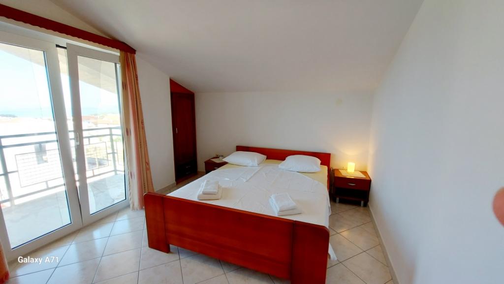 Opłata jest wliczone w cenę.APARTAMENT 4 OSÓB posiada 2 sypialnie (duże łóżko i 2 małe łóżka) + 2 łazienki APARTAMENT 4+1 OSÓB posiada 2 sypialnie (duże łóżko i 2 małe łóżka) i 2 łazienki, APARTAMENT 2+2 OSÓB posiada 1 sypialnię (duże łóżko ) 1 łazienka, STUDIO 2-OSOBOWE posiada duże łóżko, kuchnia, łazienka Pralka dla wszystkich mieszkań na parterze. Ręczniki dostępne i zmieniane raz w tygodniu. Klimatyzacja i opłata klimatyczna wliczona w cenę. Wszystkie tarasy mają widok na morze.