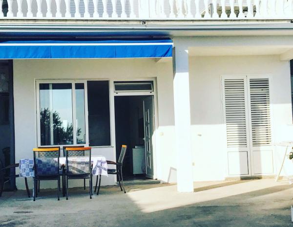 Super kwatera tuż przy plaży. Nowoczesny apartament, 2 sypialnie, 2 łazienki. Wyjście na taras z jednej z sypialni. Parking przy tarasie. Po zaciągnięciu markizy z górnych pięter nie było widać tarasu, na załączonych zdjęciach jest to dom po lewej stronie. Właścicielka jest bardzo miłą panią, rozumie czeski, więc łatwo się z nią porozumieć przez telefon. 5 gwiazdek dla mnie.