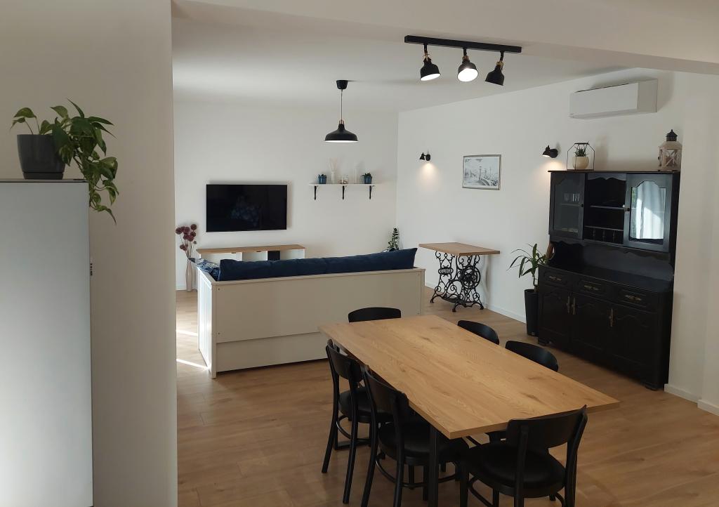 Mieszkanie znajduje się w spokojnej części miasta, na parterze nowo wybudowanego domu rodzinnego. Składa się z dwóch sypialni, łazienki, toalety, kuchni i przestronnego salonu. Wszystkie pokoje są klimatyzowane. (Każda sypialnia ma własny klimatyzator) W mieszkaniu dostępne jest bezpłatne Wi-Fi, pralka i zmywarka. Przed apartamentem znajduje się taras. Strzeżone miejsce parkingowe na podwórzu. Mieszkanie znajduje się 10 minut spacerem od plaży, w centrum miasta dostępny jest bezpłatny parking.
