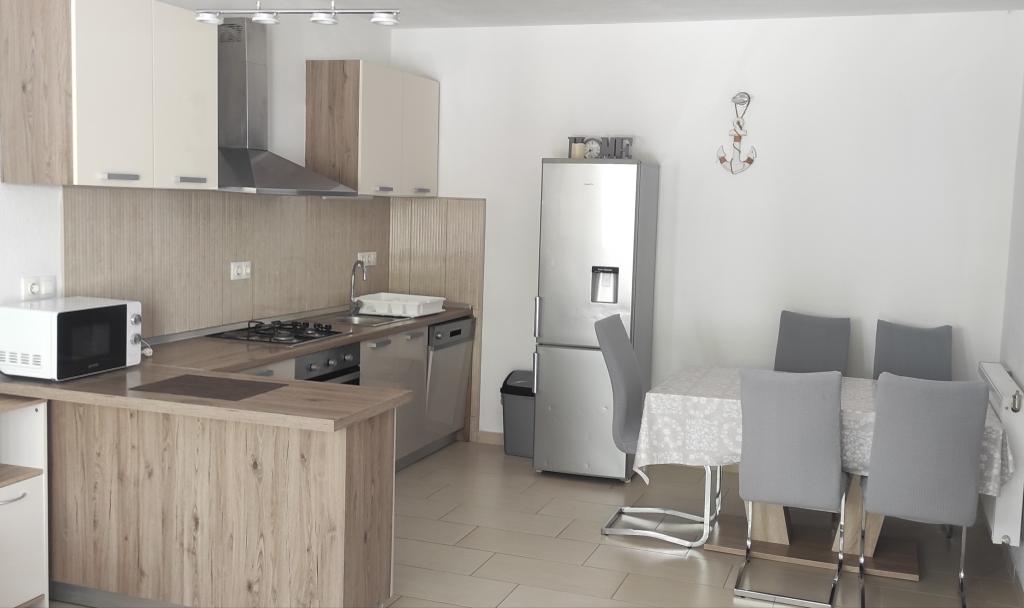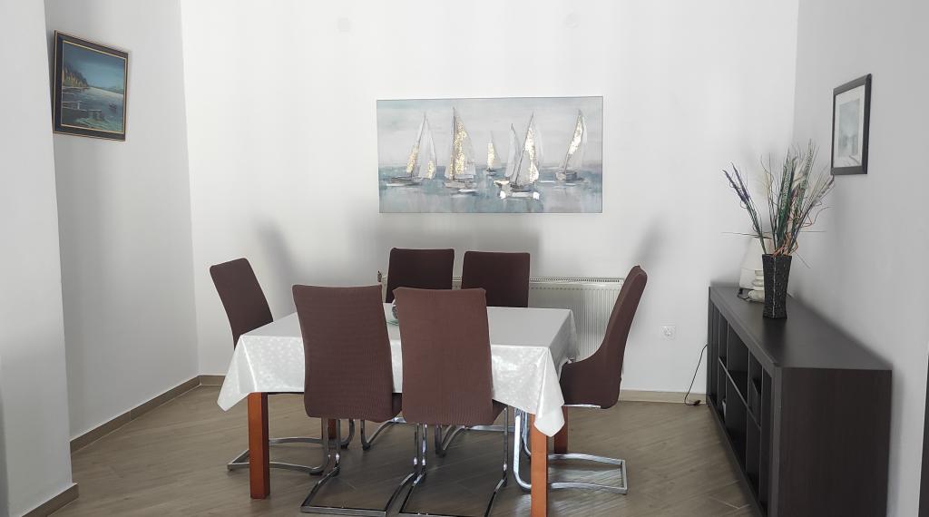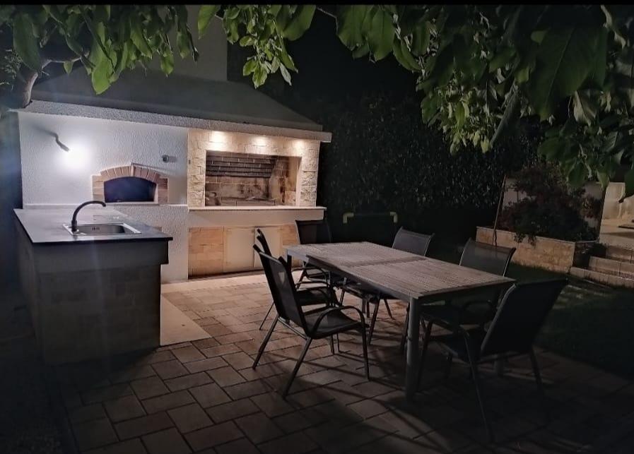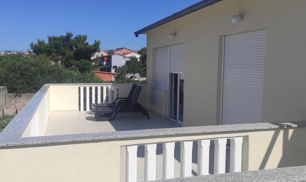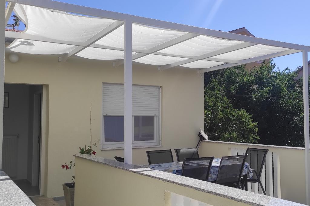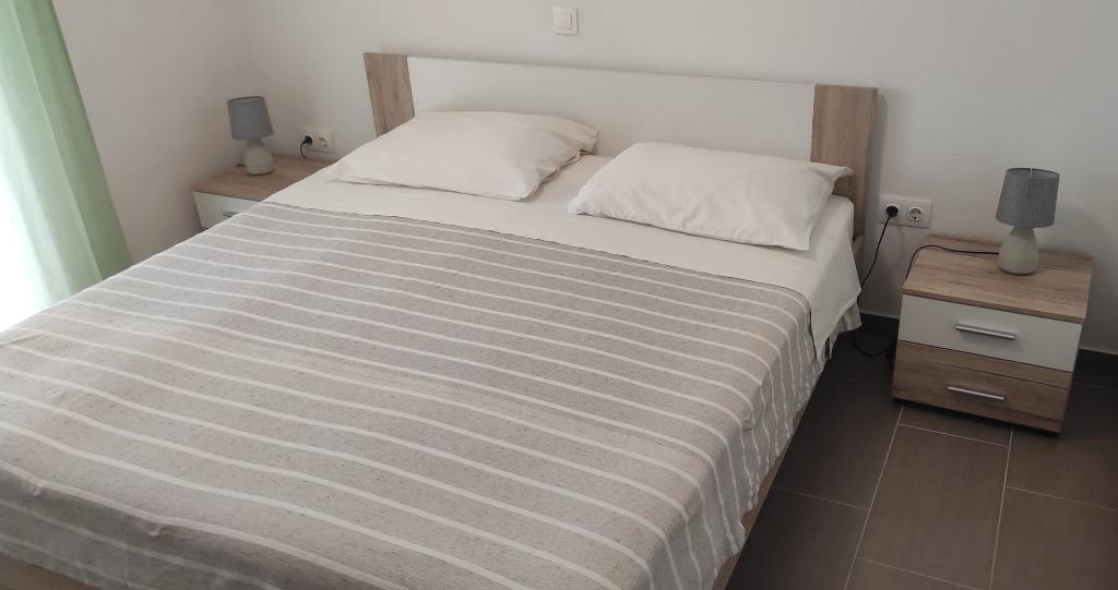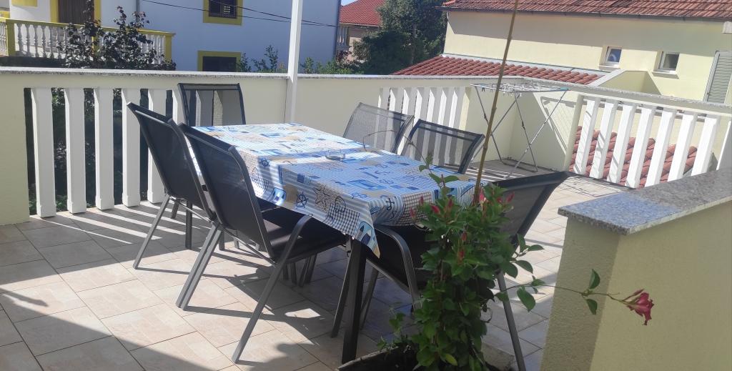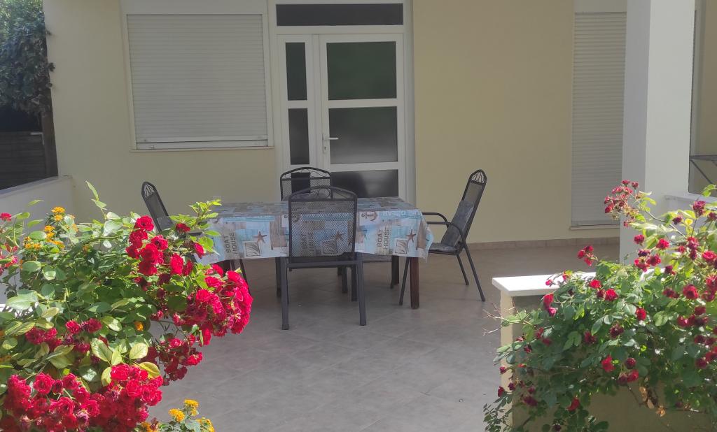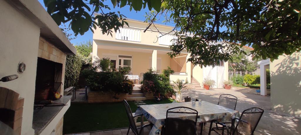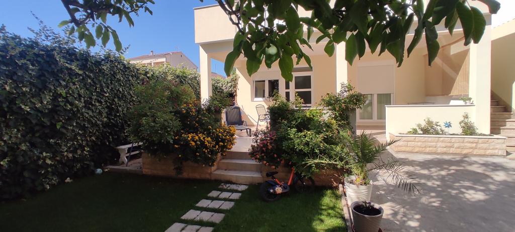 Dom rodzinny z dwoma w pełni wyposażonymi apartamentami położony jest w spokojnej części miasta, niedaleko centrum (2 min pieszo) i plaży (3 min pieszo). Budynek otoczony jest dużym ogrodem z dużą ilością zieleni i cienia, jest oddalony od drogi, co oprócz spokoju zapewnia także poczucie bezpieczeństwa. Przed domem znajduje się duży prywatny parking oraz trawnik do zabawy. Apartament A2+2 znajduje się na parterze domu i składa się z jednej sypialni, kuchni, jadalni, pokoju dziennego z rozkładaną sofą oraz łazienki. Z przodu znajduje się przestronny zadaszony taras. Apartament A4+2 znajduje się na pierwszym piętrze i składa się z dwóch sypialni, kuchni, jadalni, pokoju dziennego z rozkładaną sofą oraz łazienki. Z przodu znajdują się dwa przestronne, zadaszone tarasy. Wszyscy goście mogą korzystać z grilla na podwórku. Gospodarze są przyjaźni i gościnni.