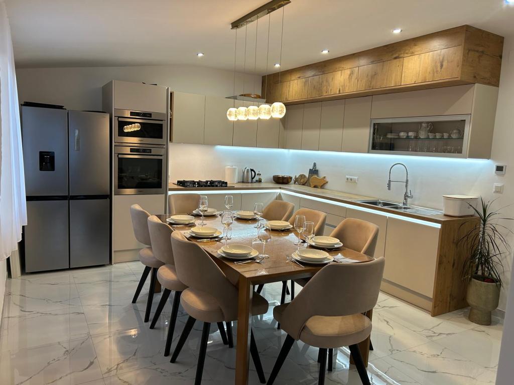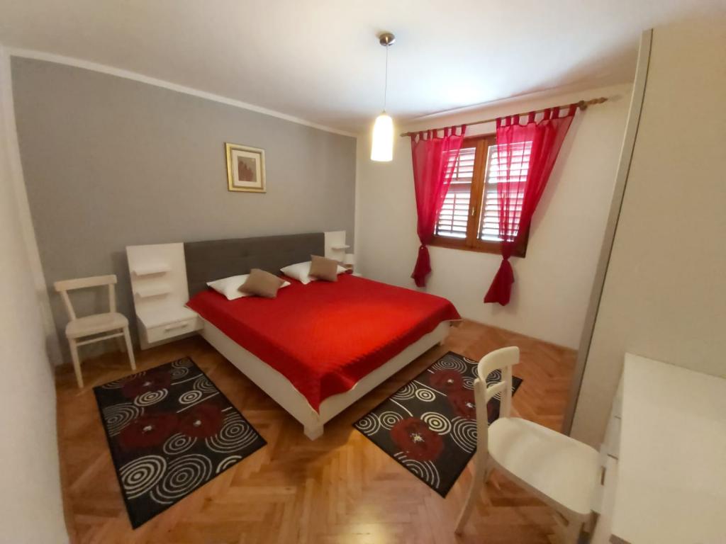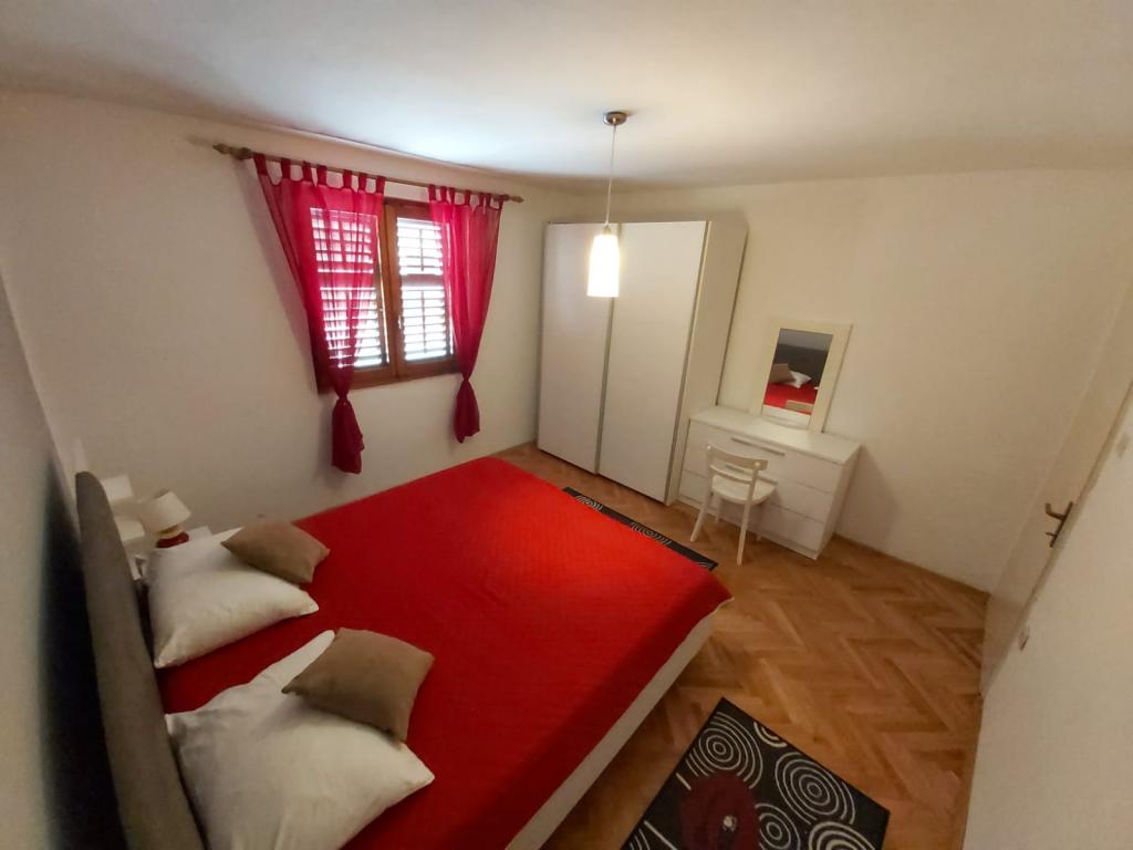 Nasze apartamenty znajdują się na 1. i 2. piętrze domu rodzinnego, 10 minut spacerem od centrum Pakoštane i plaży. Są wyposażone we wszystko, czego potrzebujesz do przyjemnego pobytu. Internet i miejsce parkingowe są również wliczone w cenę. Do dyspozycji gości jest również letnia kuchnia z kominkiem, jadalnia i łazienka. Znajduje się w pięknym ogrodzie przed domem. Apartament Ante jest klimatyzowany i składa się z salonu z kuchnią i jadalnią, korytarza, sypialni, łazienki i zadaszonego tarasu. Apartament może pomieścić 4 osoby (2 na podwójnym łóżku w sypialni, 2 na wygodnej rozkładanej sofie w salonie). Pokój Petra ma korytarz, sypialnię, łazienkę i taras. W pokoju znajduje się łóżko podwójne i łóżko pojedyncze. W razie potrzeby pokój można wynająć z apartamentem Ante, ponieważ znajdują się na tym samym piętrze. Apartament Marina ma 2 sypialnie, 2 łazienki, salon z rozkładaną sofą, kuchnię i taras z widokiem na morze. Jest całkowicie odnowiony i nowocześnie wyposażony.