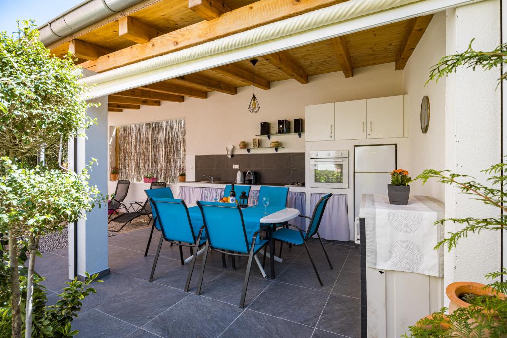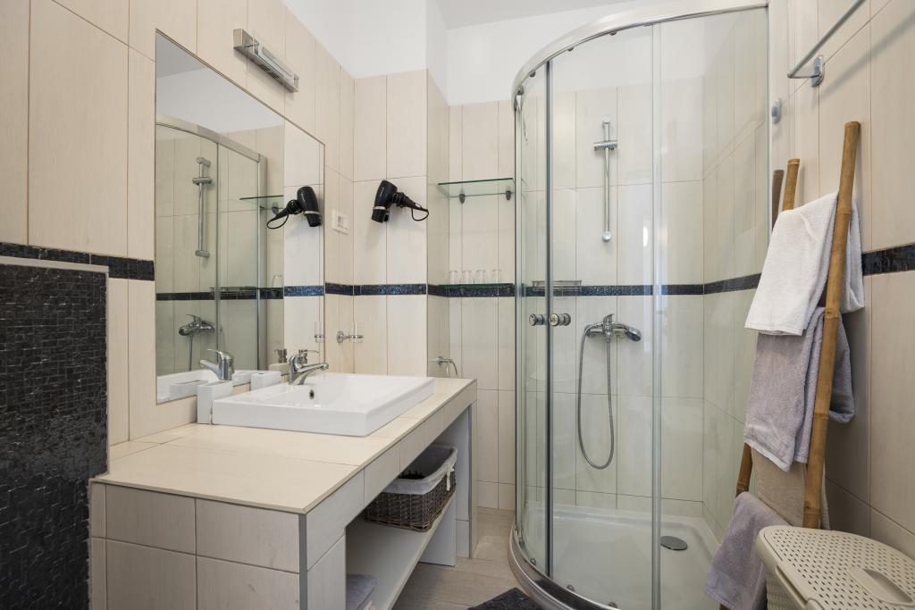 Pakoštane to małe dalmatyńskie miasteczko położone w samym sercu wybrzeża Adriatyku, w wyjątkowym położeniu między pięknym morzem a Jeziorem Vrana. Pakoštane otaczają cztery parki narodowe (Kornati, Krka, Paklenica i Jeziora Plitwickie) oraz dwa parki przyrody (Telašćica i Jezioro Vrana) o wyjątkowym pięknie, a także dwa duże miasta: Szybenik i Zadar. Apartamenty Bluemare znajdują się w idealnej lokalizacji w Pakoštane, zaledwie 50 metrów od plaży. W bezpośrednim sąsiedztwie domu znajdują się sklepy, bank, restauracje, kawiarnie, kantor wymiany walut i wszelkie inne niezbędne udogodnienia, które umilą Państwu pobyt. Dom został wybudowany w 2012 roku i mieści pięć luksusowo urządzonych apartamentów. Wszystkie są w pełni wyposażone i gotowe na Państwa przyjazd. Każdy apartament posiada: wyposażoną kuchnię ze wszystkimi sprzętami i naczyniami do gotowania i spożywania posiłków, ekspres do kawy, czajnik, telewizję cyfrową z programami satelitarnymi, klimatyzację, sejf, bezpłatny internet, taras, wyposażone łazienki i sypialnie. Do dyspozycji gości są również: parking, grill, plac zabaw dla dzieci, kuchnia letnia z piekarnikiem, zmywarką i wszystkimi przyborami kuchennymi. W apartamentach mile widziane są również małe zwierzęta (psy). Apartament Bronze znajduje się na niskim parterze i może pomieścić maksymalnie 4 osoby. Składa się z sypialni z łóżkiem małżeńskim, w pełni wyposażonej łazienki z prysznicem, tarasu, kuchni oraz salonu z rozkładaną sofą, która może stać się wygodnym łóżkiem dla dwóch osób. Apartament Silver znajduje się na pierwszym piętrze i może pomieścić maksymalnie 5 osób. Składa się z sypialni z łóżkiem małżeńskim i jednym mniejszym łóżkiem, w pełni wyposażonej łazienki z prysznicem, tarasu, kuchni oraz salonu z rozkładaną sofą, która może stać się wygodnym łóżkiem dla dwóch osób. Apartament Gold znajduje się na pierwszym piętr