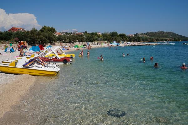 Unseres Familienhaus befindet sich in Ort Pakoštane und hat 4 vollkomen neue und modern eingerichtete Ferienwohnungen. Das Haus ist ausserst günstig gelegen, nur eine Gehminute der Straße entlang bis zum wunderschönen Familienstrand, und kaum fünf Minuten bis zum Ortszentrum. Das Haus wurde 2012 gebaut, ist mit neuen Möbeln komfortabel eingerichtet, und verfügt über privates Parkplatz und einen Holzgrill den sie während Ihres Aufenthalts benützen können. Alle 4 Apartments in Apartmenthaus „Luka“ sind gleich, identisch ausgestattet und möbliert, für 4 Personen geeignet, und befinden sich auf 2 Stockwerken. Es gibt kein Unterschied zwischen Apartments auf ersten und zweiten Stock. Alle Apartments haben eine große Terasse mit ausserordentlichen Meerblick und eine Klimaanlage. Es ist möglich ein Apartment einzeln oder mehrere zusammen für grossere Familien oder Freunden zu buchen. Unsere Apartments sind darum für einen erholsamen Familienurlaub ideal. Für eine definitive Buchung und Reservation ist eine Anzahlung von 30 % des Gesamtpreises fällig. Apartment A1 – für 4 Personen Apartment A 2 2 befindet sich im 2. Stockwerk des Hauses und ist durch gemeinsame Treppen zu erreichen. Apartment A1 teilt mit Apartment A2 eine kleine Flur. Die Fläche ist 50 m2. Der Apartment besteht aus einen Schlafzimmer mit Ehebett 160 x 200 cm und einen Wohnzimmer mit Küche wo sich eine Sitzgarnitur in das Ehebett Dimension 160 x 200 ausklappt. Es gibt ein modernes Badezimmer mit Duschkabine. Von einen grossen sonnigen Terasse heraus, sieht man aufs Meer und die umgegebene Inseln. Das Apartment hat eine Klimaanlage. Apartment A2 - für 4 Personen Apartment A 2 2 befindet sich im 2. Stockwerk des Hauses und ist durch gemeinsame Treppen zu erreichen. Apartment A2 teilt mit Apartment A1 eine kleine Flur. Die Fläche ist 50 m2. Der Apartment besteht aus einen Schlafzimmer mit Ehebett 160 x 200 cm und einen Wohnzimmer mit Küche wo sich eine Sitzgarnitu