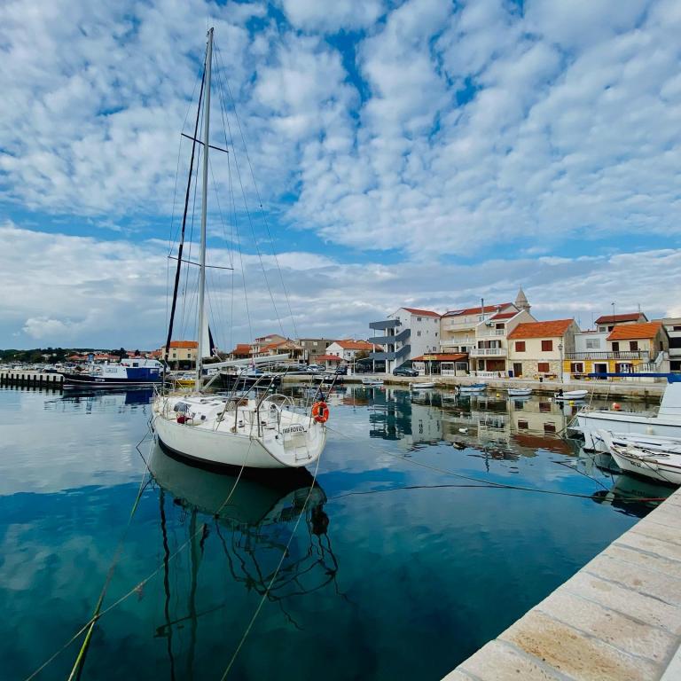 Nowoczesne apartamenty położone na niewielkim wzgórzu, w cichej okolicy Pakoštane z pięknym widokiem na morze i wyspy, a jednocześnie tak blisko do miasta i plaży, wiele restauracji i sadržaja.Udaljenost turystyczny morze jest tylko 300m.Nudimo komfortowe zakwaterowanie w czterech pokojach ( trzy apartamenty i jedno studio apartament).