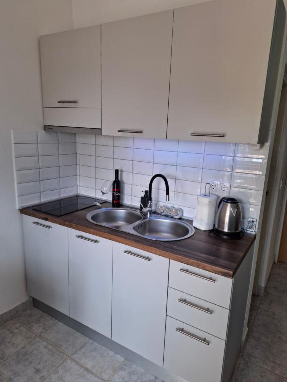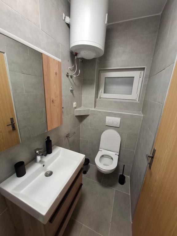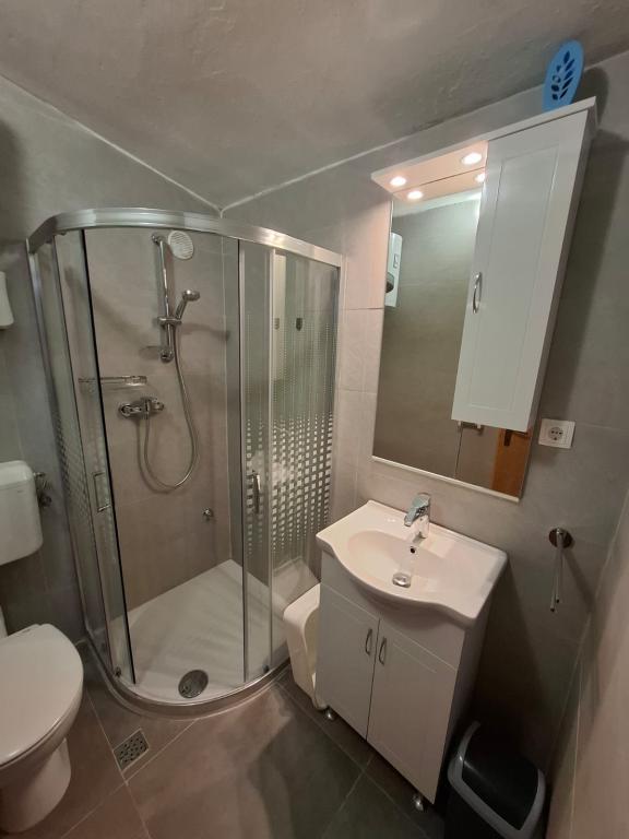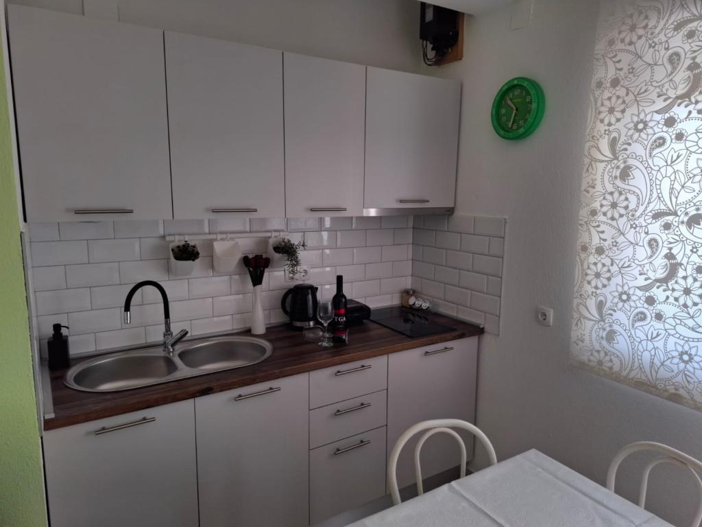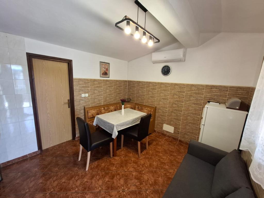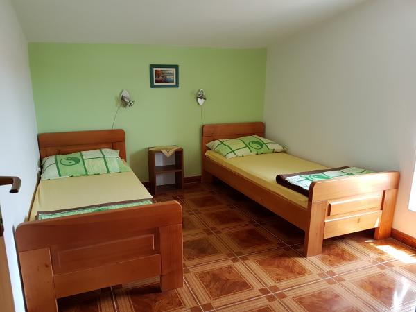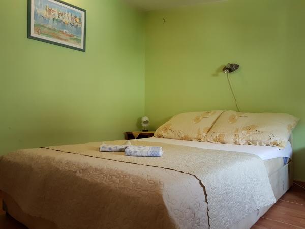 Cztery APP (2 2) w cichej części Pakostane. APP składa się z sypialni, gdzie podwójne i potrójne szafy. W pokoju dziennym znajduje się rozkładana (200x140), stół z czterema krzesłami, aw jednym kącie kuchni. Kuchnia składa się z sudopra, piece kuhanhe z piekarnikiem i lodówką. Apartament posiada klimatyzację i telewizję. Przed tarasem app ze stołem i czterema krzesłami dla Twojej aplikacji. APP znajduje się na pierwszym piętrze prywatnego domu. Dwupokojowe apartamenty składają się z dwóch sypialni, kuchni, jadalni i łazienki z prysznicem. Każdy apartament posiada duży taras z widokiem na morze, Klimatyzacja. TELEWIZJA. W ogrodzie grill huśtawki dla dzieci oraz parking na ogrodzonym terenie.