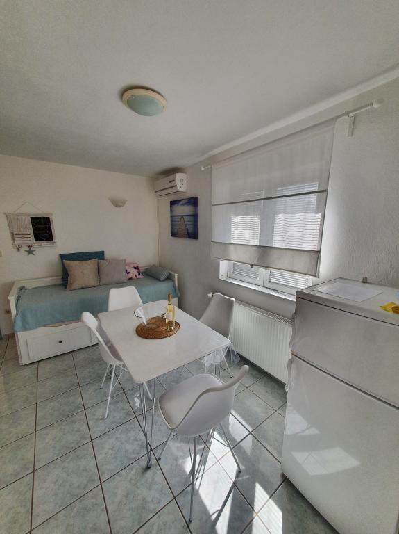 Bardzo ładne zakwaterowanie, piękny duży taras. Studio wystarcza dla rodziny z małymi dziećmi. Sprzęt jest świetny, wszystko, czego potrzebujesz. Bardzo mili właściciele, bardzo życzliwi i chętni. W odległości krótkiego spaceru do plaży. Wieczorem i nocą. Zalecamy cieszenie się naszymi wakacjami.