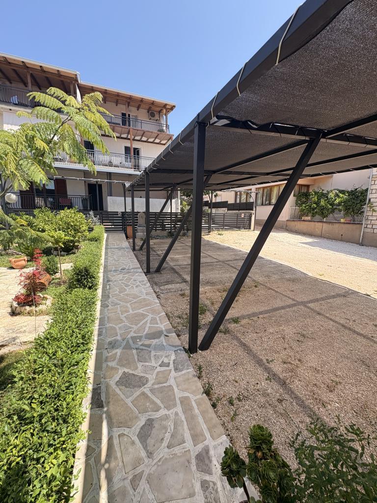 Dom z apartamentami położony jest blisko morza i miasta. Tylko pięć minut spacerem do plaży i oferuje spokój i prywatność. Przed domem znajduje się parking dla każdego pojazdu i ochronę przed słońcem. W ogrodzie jest grill, który można zawsze. Każdy apartament posiada własne wejście. Duże balkony od strony południowej z widokiem na morze.