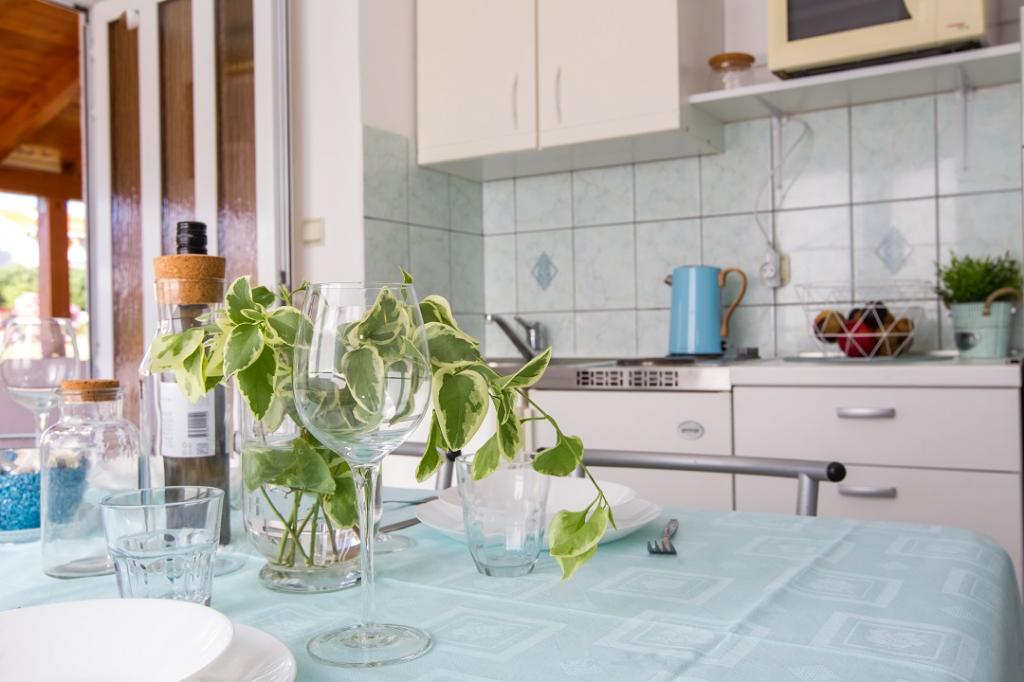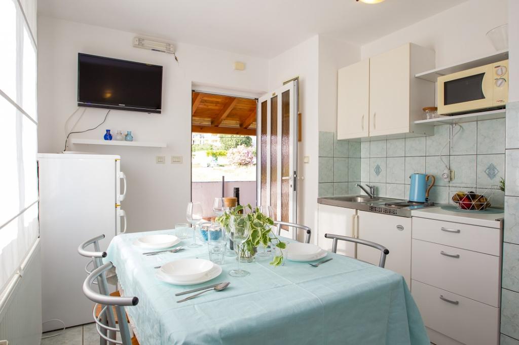 Świetne wakacje Bardzo ładne i dobre zakwaterowanie, duży taras ze stołem i krzesłami oraz leżak, na którym można korzystać z rolety przeciwsłonecznej, pokoje wyposażone w klimatyzację. Lokalizacja obiektu była dobrze oznakowana, dom ma duży parking na 4 samochody. Wyposażenie pokoju było według zdjęć w Internecie, wysłaliśmy również kilka nowych zdjęć od właściciela z nowym wyposażeniem pokoju (studia). Studio jest idealne dla rodziny z 2 dzieci, jest pełne łóżko dla 2 osób. Wyposażenie innych mebli jest dobre, wyposażenie kuchni jest wyposażone w sprzęt AGD, a meble dokładnie według zdjęć, naczynia wystarczą dla 4-osobowej rodziny, jest wszystko, czego potrzebujesz. W pobliżu domu znajduje się sklep z pieczywem i sprzedaż owoców i warzyw. Bardzo mili właściciele, sympatyczni i pomocni, bardzo dobra umowa. W odległości krótkiego spaceru do plaży. Wieczorem i nocą. Podobało nam się nasze wakacje, polecamy. Wypożyczyliśmy również inne studia - 2 + 2 i 3 + 1, nawet te były w porządku, w studiu 3 + 1 znajduje się idealnie zasłonięte siedzisko (pergola), na którym siedzi około 10 osób. W odległości krótkiego spaceru od domu (około 200 m) zaczyna się centrum miasta z dobrymi restauracjami i sklepami. Plaże są kamieniste - drobny żwir i beton.