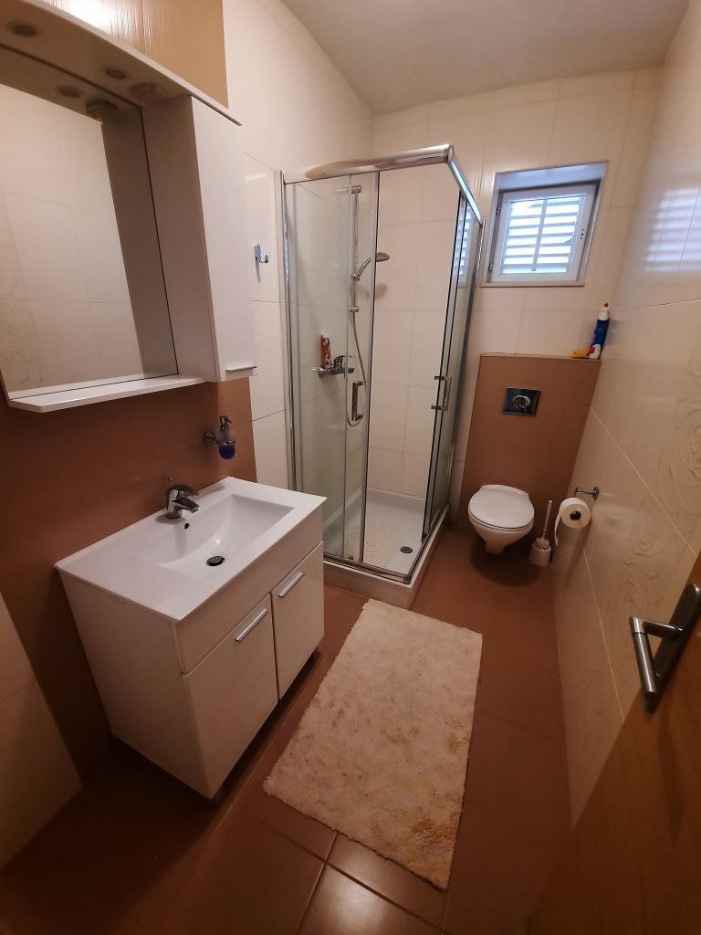 Świetne zakwaterowanie, plaża bezpośrednio przed apartamentem jest piaszczysta, można dojść do morza wystarczająco daleko, idealne dla małych dzieci. W szczycie sezonu jest dość pełno, ale trochę obok wejścia na skały jest znacznie mniej ludzi. Apartamenty są czyste, nieco mniejsze, ale zapewniają wszystko, czego potrzebujesz. Kuchnia w pełni wyposażona, trochę mi brakowało mikrofali, ale daliśmy radę. Mieli studio 2+1, z dużym tarasem z widokiem na morze. Parking jest pod drzewami, zapewniają wystarczająco dużo cienia dla samochodów. Gospodarze mieszkają na najwyższym piętrze, więc są zawsze dostępni, mają przed budynkiem bufor z burgerami. Właścicielka Katarzyna jest bardzo chętna do pomocy, w razie zainteresowania prześle więcej zdjęć, a jeśli potrzebne są większe mieszkania, mają inny dom około 80m od tego, którym zarządza jej teściowa. Niedaleko mieszkania znajduje się mała piekarnia, codziennie rano przed mieszkaniem sprzedają świeże owoce. Lokalizacja idealna dla rodzin z dziećmi, na większości plaż są łagodne zejścia do morza, w pobliżu jest wiele małych wysepek, na które można dojechać na rowerach wodnych lub można wypożyczyć łódkę na cały dzień i popłynąć dalej . Jedyny minus: właściciele mogli przyporządkować zdjęcia do poszczególnych mieszkań, aby zainteresowany mógł się odnaleźć, gdy jest zainteresowany mieszkaniem. Katarzyna przyśle Ci zdjęcie na życzenie, ale przecież tylko jak je zobaczysz od razu, możesz podjąć decyzję szybciej. Na pewno chcielibyśmy tu jeszcze wrócić, byliśmy bardzo zadowoleni.
