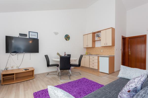 Duży, czysty i dobrze urządzony apartament w wyjątkowej lokalizacji. W pobliżu - nie ma potrzeby korzystania z samochodu, kilka pięknych plaż, sklepy w odległości 5 m, kawiarnie, restauracje i własny parking tuż przed apartamentem. Najwyższej jakości wyposażenie apartamentu - wszystko do gotowania, duży telewizor z dużą ilością treści, WiFi, klimatyzacja, duży balkon z markizą i pięknym widokiem na morze, które ze względu na swoje położenie nie jest gorące i można się delektować przez cały dzień. Do tego wszystkiego gościnność, ciepło i dostępność właściciela apartamentu to gwarancja idealnego wypoczynku. Wszystkiego najlepszego i na pewno będziemy wracać co roku.