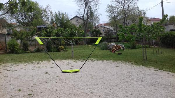 Posiadamy garaż na rowery, sprzęt do gier dla dzieci typu tenis stołowy, badminton, rzutki, wózki dziecięce, romobile, rowery... Grill zewnętrzny oraz meble do siedzenia w cieniu przy grillu i na trawniku. Oferujemy domową oliwę z oliwek i brandy.