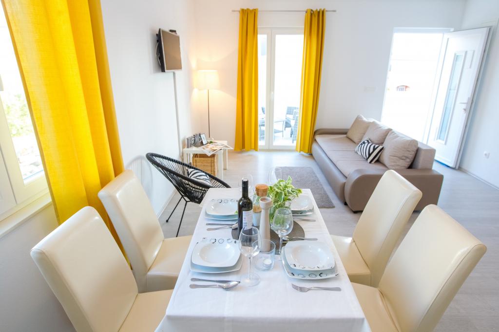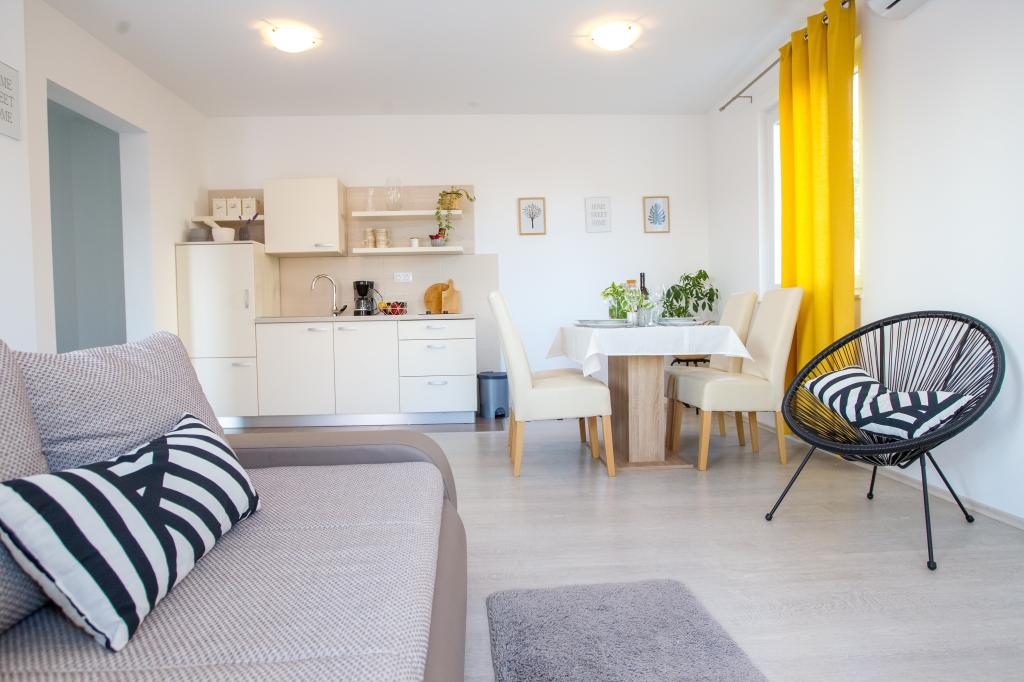 Pobyt w apartamencie A2+2 z tarasem godne polecenia ,czysto ,cicho , zgodne z opisem oferty.Wszystko sprawne- kuchenka, ciepła woda i klimatyzacja .Właścicielka bardzo miła ,pomocna komunikatywna. Do centrum miasta jest blisko, sklepiki z artykułami spożywczymi,kramy z owocami i warzywami, piekarnia z pysznym chlebem i restauracje. Plaża niedaleko. Dziękuję za wspaniałe wakacje, będziemy szczęśliwi, aby odwiedzić to miejsce ponownie.