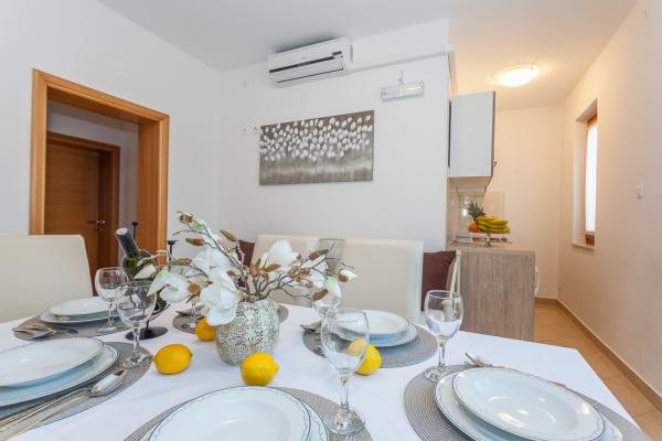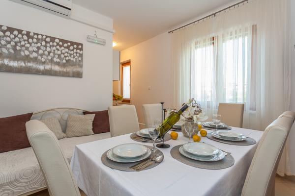Apartament który z czystym sercem mogę polecić wszystkim. Czysty, przestronny z widokiem na morze. Nasza czteroosobowa rodzina czuła się w nim komfortowo. Na dole ogród, w którym dzieciaki bawiły się z żółwiem właścicieli. Gospodarze mili,pomocni, uśmiechnięci. Koło apartamentu sklep. Do morza bardzo blisko. Polecam !!!!