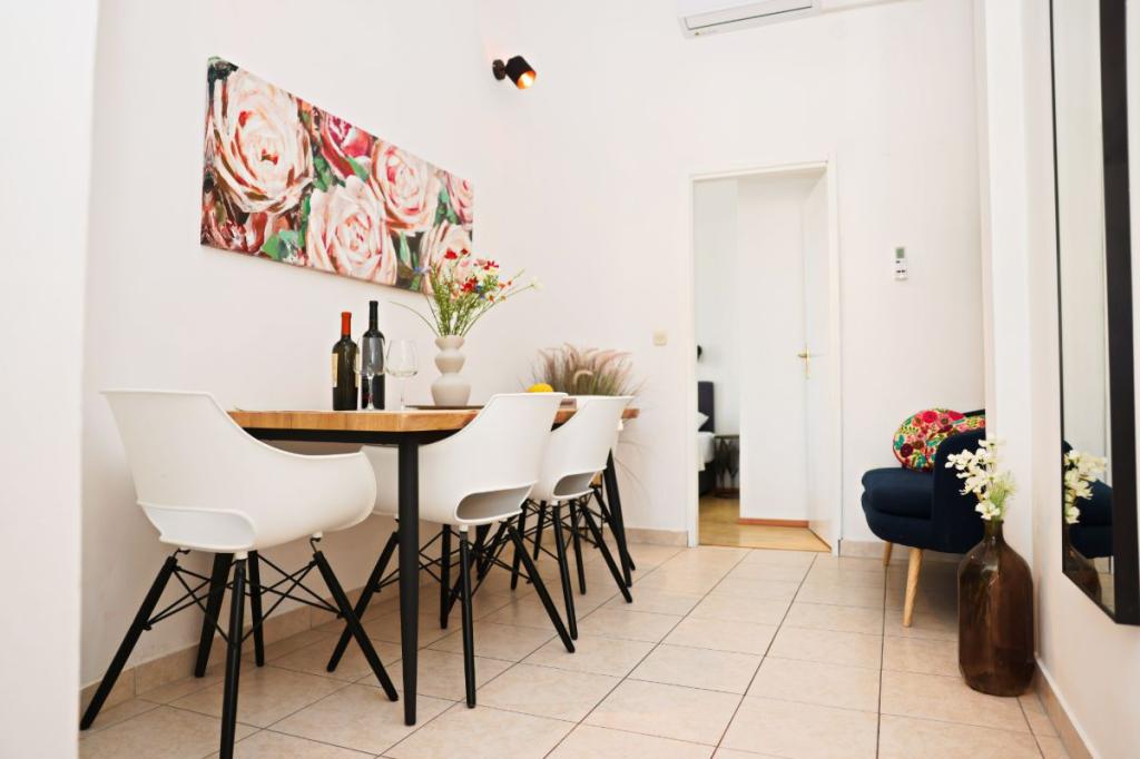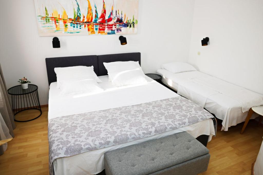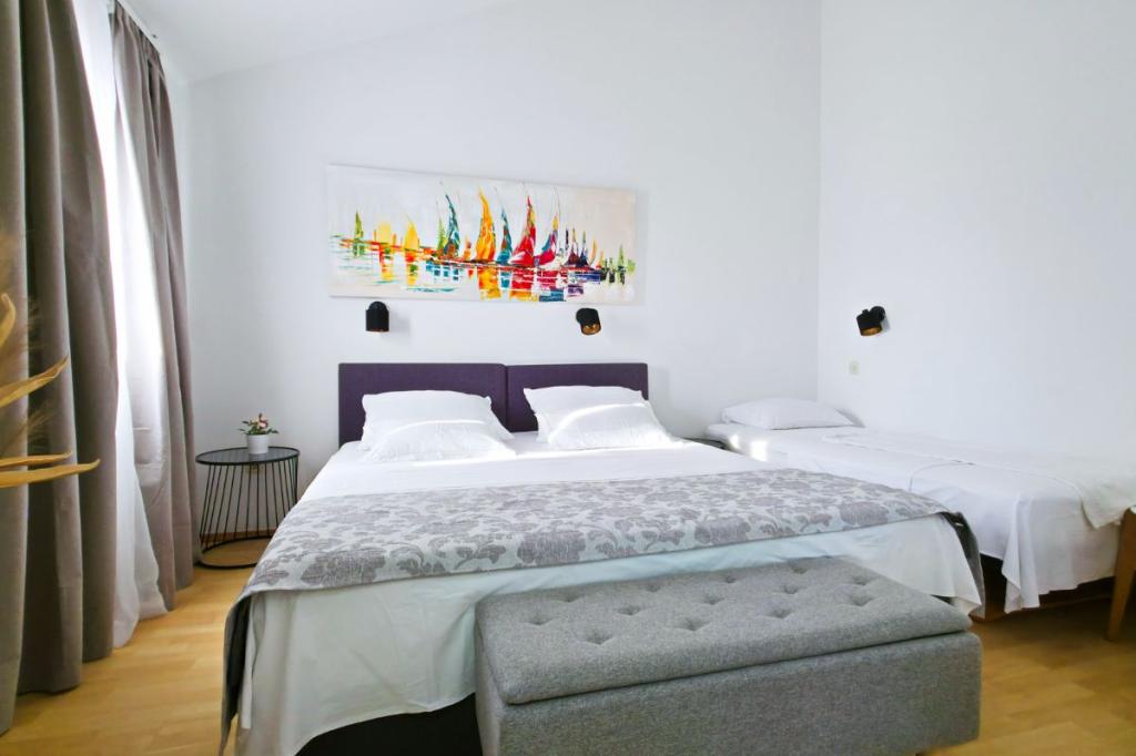 Apartamenty Tri Ferala położone są w samym centrum Pakoštane, zaledwie kilka kroków od głównego placu, sklepów, kawiarni, restauracji i targu rybnego. Apartamenty znajdują się nad słynną restauracją Tri Ferala, oferując spokój, prywatność i wygodę, a z tarasów roztacza się widok na malownicze uliczki Pakoštane. Plaża Janice, chętnie odwiedzana przez mieszkańców i turystów, oddalona jest o zaledwie 300 metrów. Jeśli szukasz zakwaterowania oferującego wygodę, dogodną lokalizację i autentyczne dalmatyńskie doznania, Apartamenty Tri Ferala są doskonałym wyborem. Zapytania prosimy przesyłać wyłącznie za pomocą formularza kontaktowego. Cennik jest aktualny i poprawny.