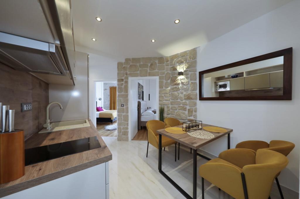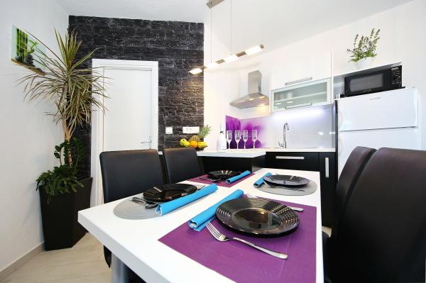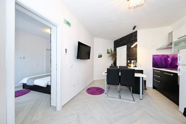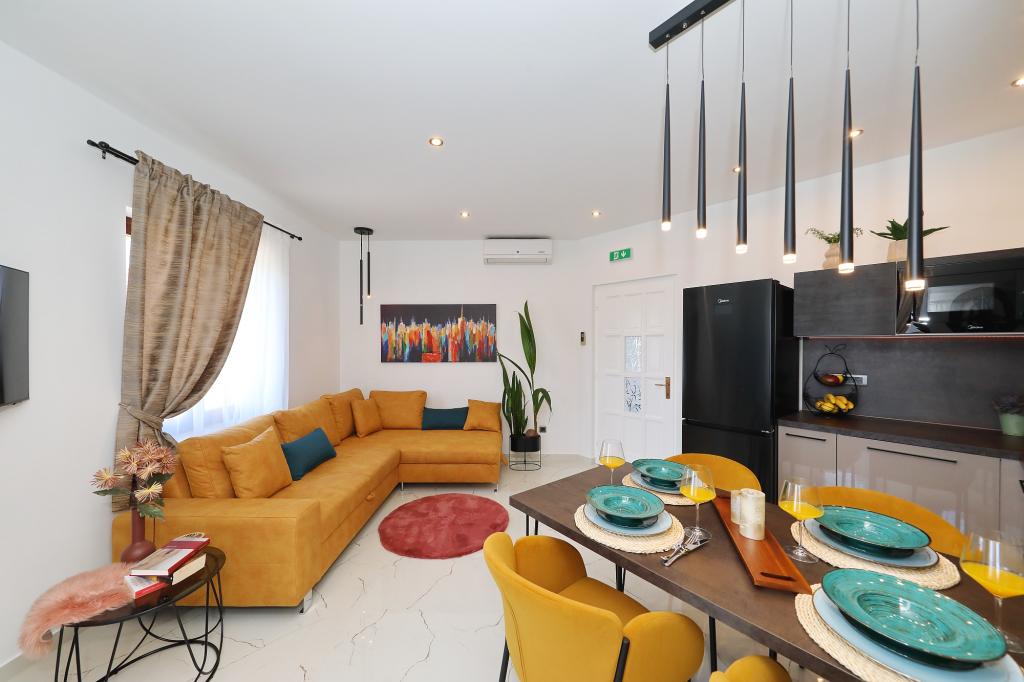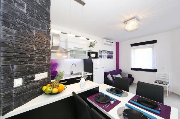 Super noclegi, apartamenty piękne, urządzone, nowszy sprzęt, przyjaźni i gościnni właściciele, plaża super iw bezpośrednim sąsiedztwie apartamentu, naprawdę wszystko super. Satysfakcja bardzo; jeśli wszystko jest szczęśliwe, w przyszłym roku wrócimy .. Doskonały odpoczynek na odpoczynek i inne aktywności.