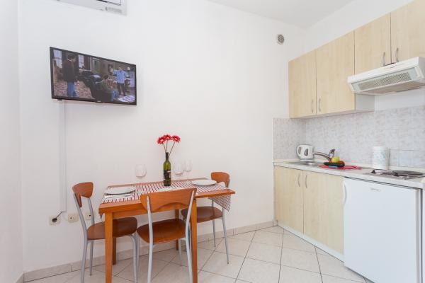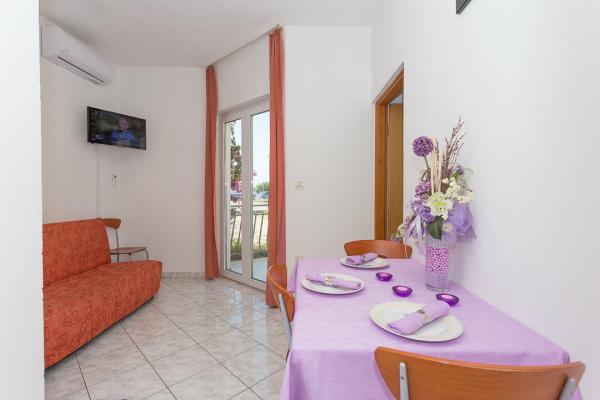Jedno- i dwupokojowe apartamenty i studia W samym centrum Pakoštan, tuż obok głównego parkingu. Odległość od plaży 70 metrów, 10 metrów od banku i sklepu. Parking strzeżony przed apartamentem, grill i Wi-Fi!