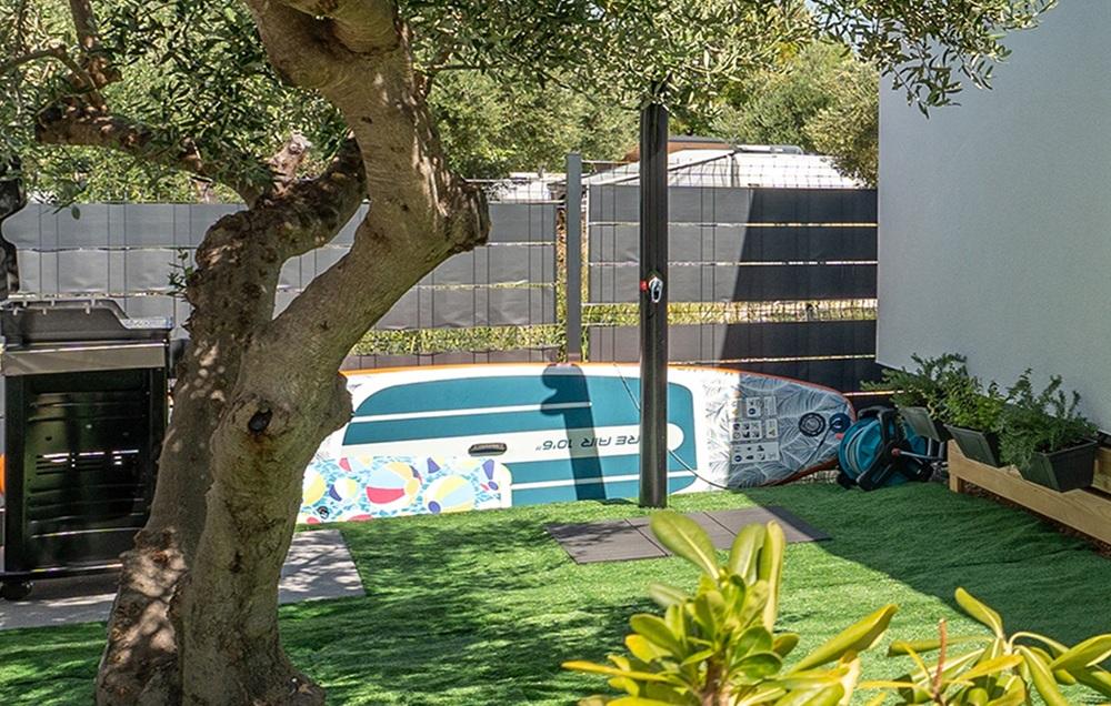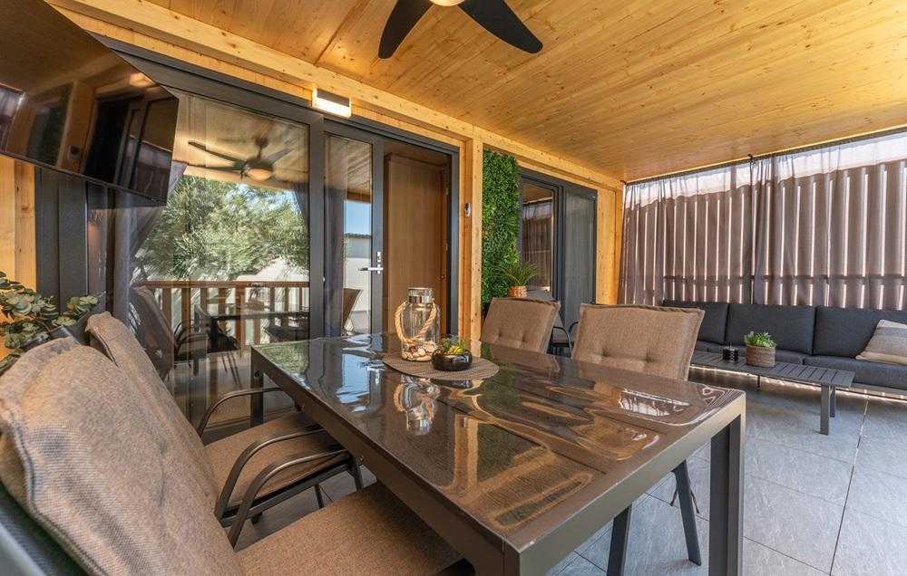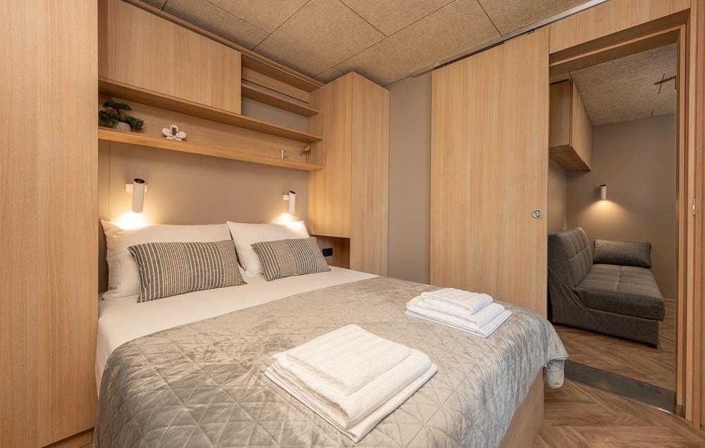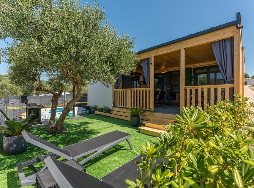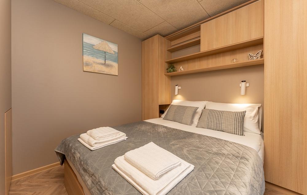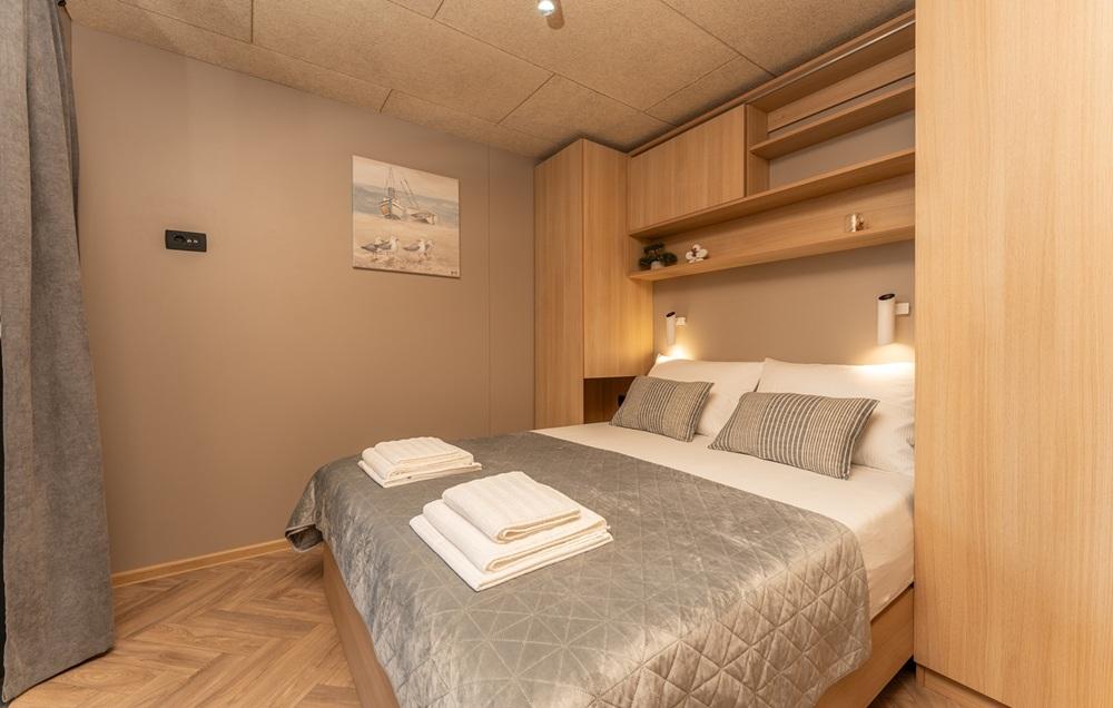 Domek mobilny o wysokim standardzie „ENJOY BY BEACH” – przy plaży Janice. Domek mobilny „Enjoy by Beach” znajduje się na 4-gwiazdkowym kempingu Skalinada, zaledwie 100 m nad plażą Janice i 800 m od centrum Pakoštane. Dom jest całkowicie nowy i wyposażony w wysokim standardzie. Podczas pobytu właściciel domu jest do Państwa dyspozycji i pomoże spełnić wszystkie Państwa potrzeby i życzenia.