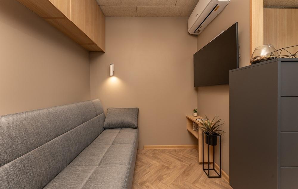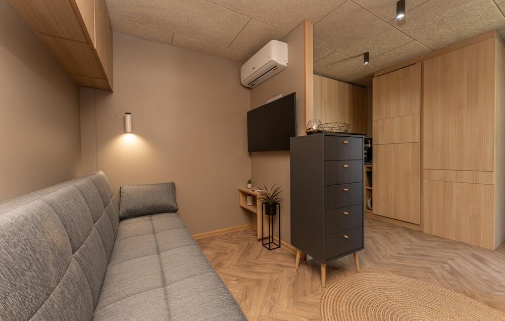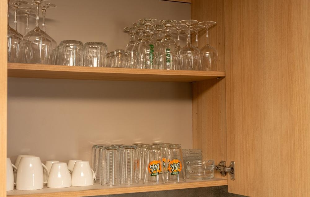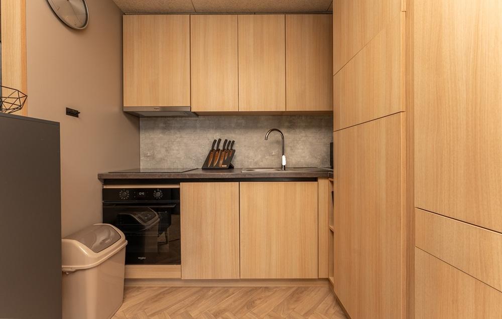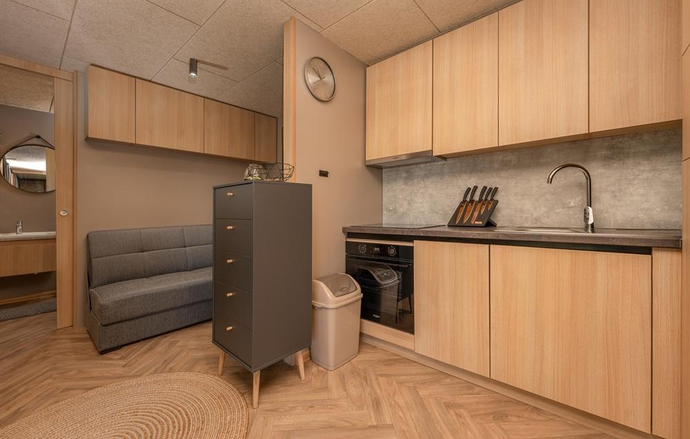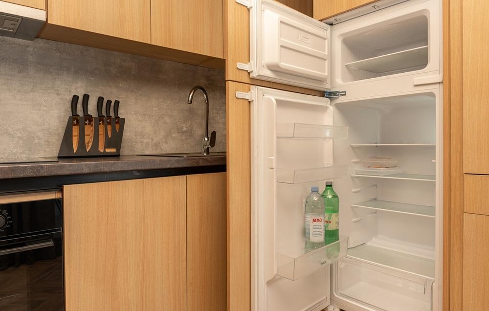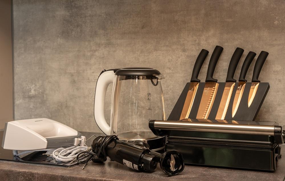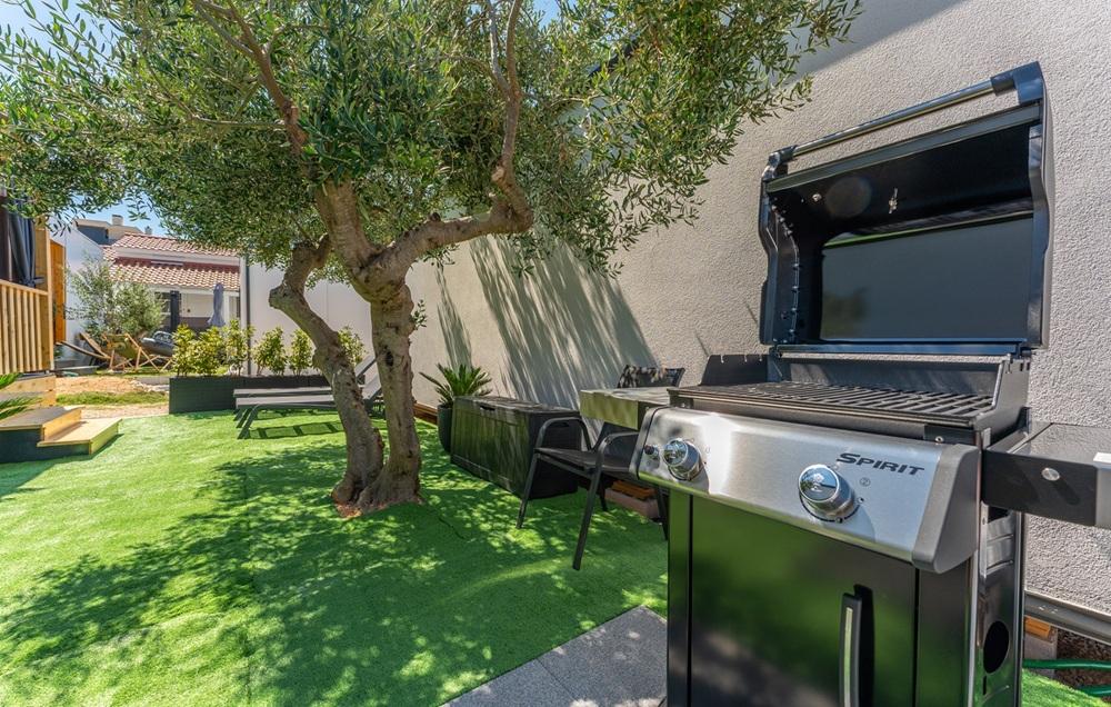 Do dyspozycji gości jest pralka, zmywarka, klimatyzacja, lodówka zewnętrzna i wewnętrzna, wentylator na tarasie, telewizor w salonie i na tarasie. Dom posiada dwie sypialnie z łóżkami o szerokości 160 cm. Łóżka wyposażone są w wysokiej jakości materace, nakładki na materace i satynową pościel. Kuchnia jest w pełni wyposażona w naczynia i sprzęt AGD: ekspres do kawy, piekarnik, kuchenkę mikrofalową, toster... Na podwórku goście mają do dyspozycji grill, leżaki i dwie deski SUP. Dom posiada szybki internet StarLink.