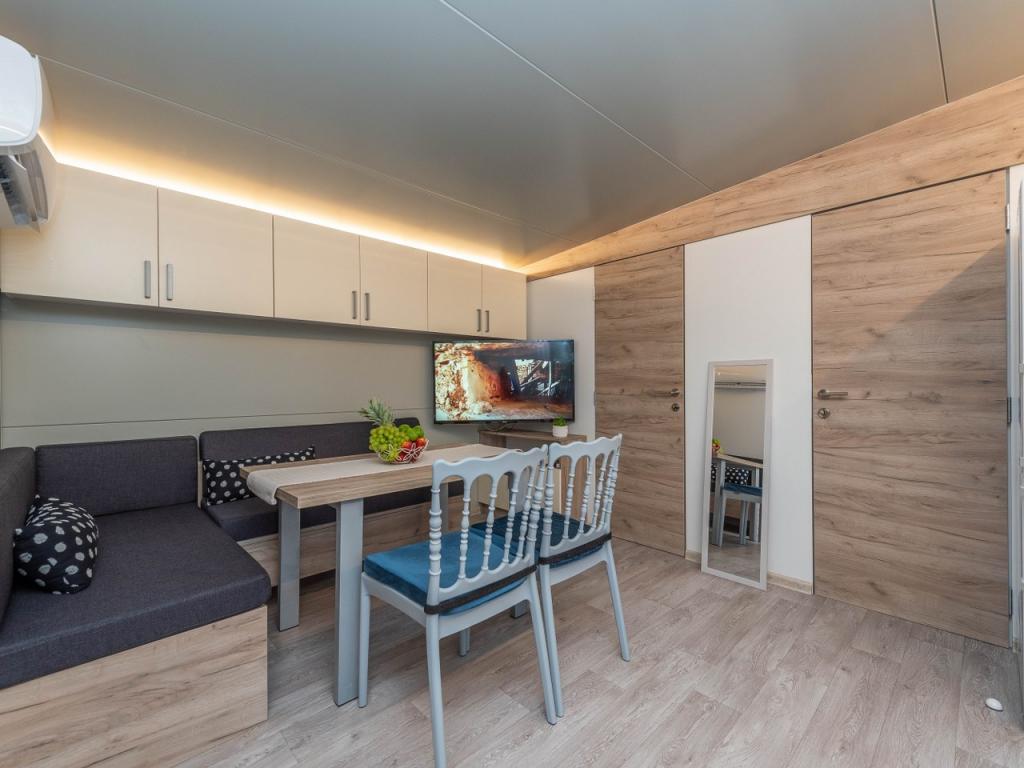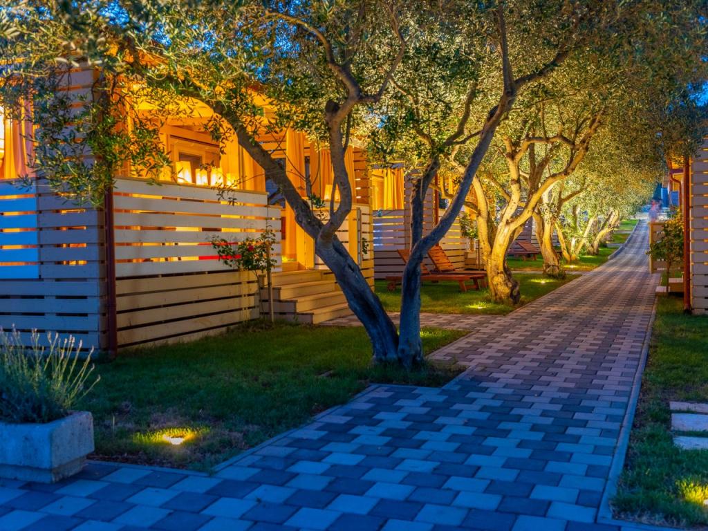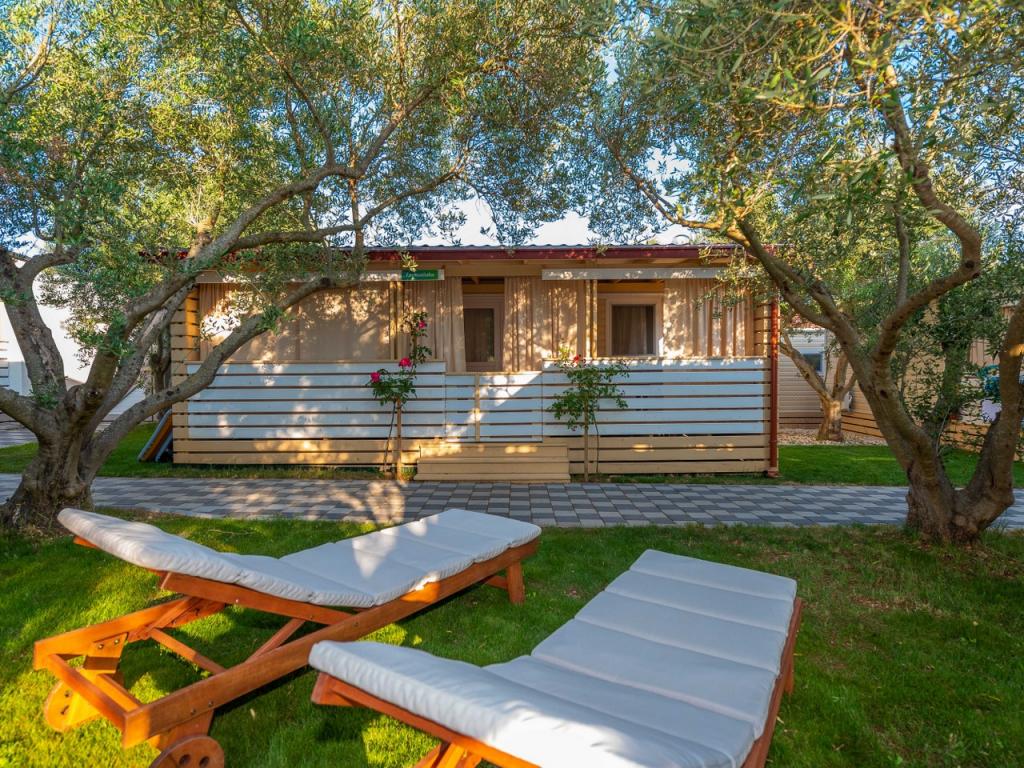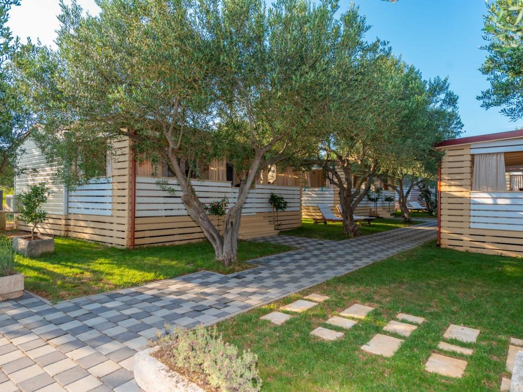 Nasz nowo otwarty kemping w spokojnej części Pakostane jest idealnym miejscem na wakacje. Na rozległym terenie w pobliżu morza mamy dwanaście zupełnie nowych przyczep kempingowych zbudowanych w sezonie 2017/18. lat. W ciszy nietkniętej przyrody, mamy siedzibę, aby oglądać piękne morze Dalmacji, słońce i wyspy. Domy otoczone są drzewami oliwnymi, które w nocy wydają się fantastyczne. Każdy domek ma przestronny taras o powierzchni 24 m2, na którym znajduje się stół jadalny i narożny zestaw do odpoczynku o każdej porze dnia. Wnętrze domku zostało odnowione i nie zabraknie mu komfortu i relaksu w stylu śródziemnomorskim. Obóz oddalony jest od centrum o 10 minut pieszo. Jest również idealny dla grup rowerowych ze względu na dużą liczbę obiektów noclegowych i bliskość ścieżek rowerowych. Możliwość zorganizowania kolacji dla grup.
