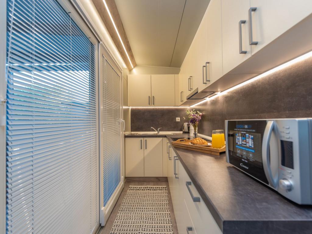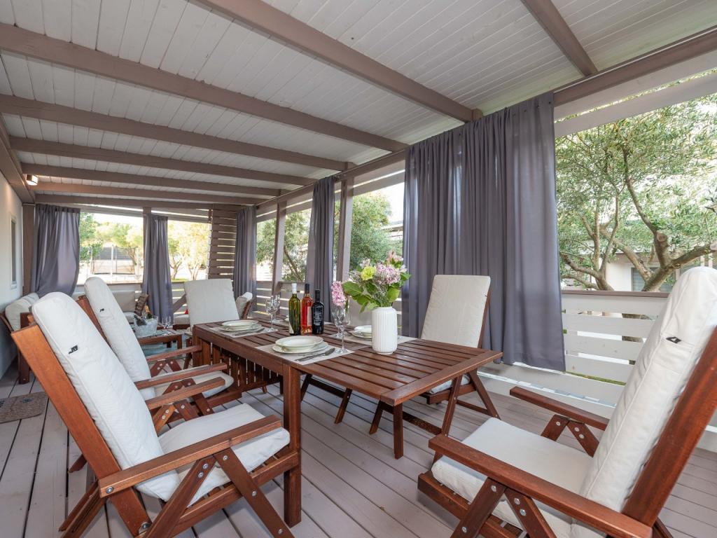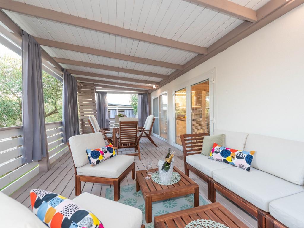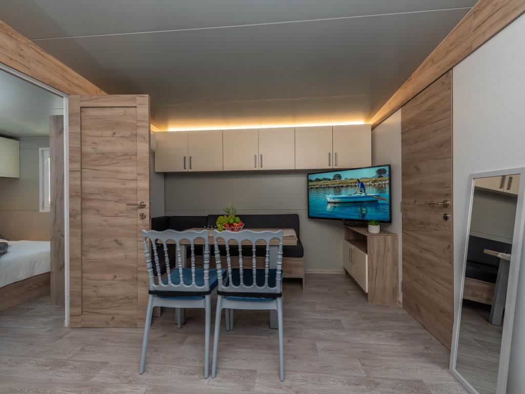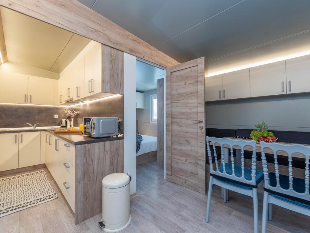 Nasz nowo otwarty kemping w spokojnej części Pakostane jest idealnym miejscem na wakacje. Na rozległym terenie w pobliżu morza mamy dwanaście zupełnie nowych przyczep kempingowych zbudowanych w sezonie 2017/18. lat. W ciszy nietkniętej przyrody, mamy siedzibę, aby oglądać piękne morze Dalmacji, słońce i wyspy. Domy otoczone są drzewami oliwnymi, które w nocy wydają się fantastyczne. Każdy domek ma przestronny taras o powierzchni 24 m2, na którym znajduje się stół jadalny i narożny zestaw do odpoczynku o każdej porze dnia. Wnętrze domku zostało odnowione i nie zabraknie mu komfortu i relaksu w stylu śródziemnomorskim. Obóz oddalony jest od centrum o 10 minut pieszo. Jest również idealny dla grup rowerowych ze względu na dużą liczbę obiektów noclegowych i bliskość ścieżek rowerowych. Możliwość zorganizowania kolacji dla grup.