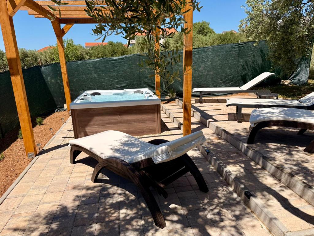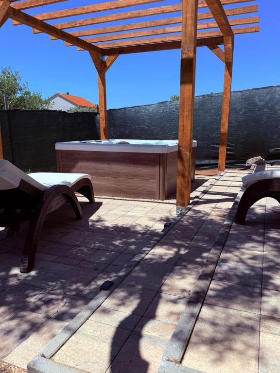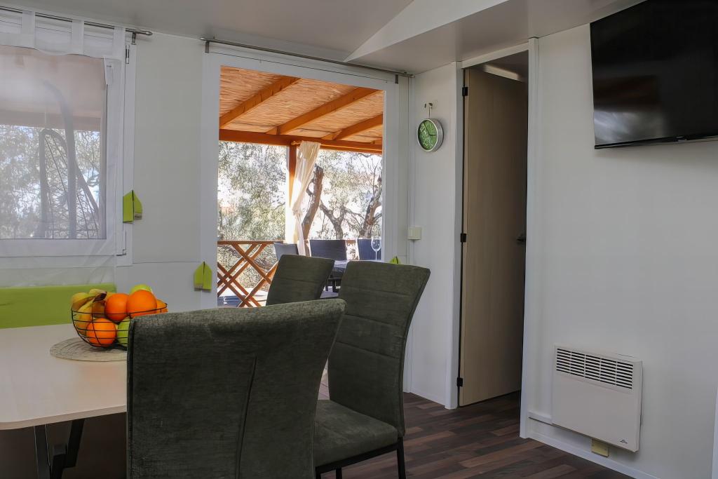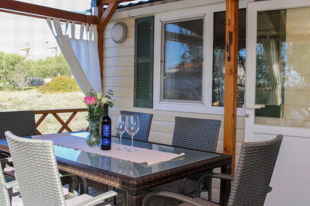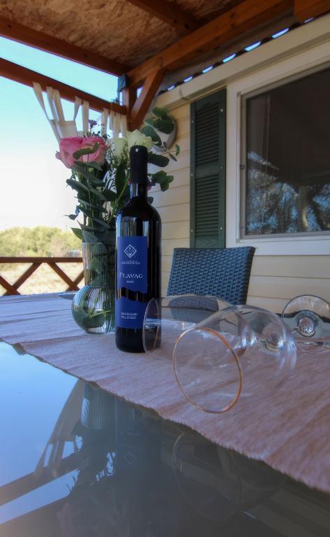 Mobilny dom o powierzchni 32 m2 położony jest w spokojnej części Pakoštane, 7-8 minut spacerem od centrum miasta i około 10 minut od plaży. Dom jest nowocześnie urządzony i w pełni wyposażony, posiada dwie sypialnie, każda z nich ma własną łazienkę z prysznicem/toaletą, kuchnię i salon. Dom posiada również klimatyzację i ogrzewanie. Drewniany taras o powierzchni 24 m2 z zestawem wypoczynkowym i stołem z 6 miejscami, nadający się do spożywania posiłków na świeżym powietrzu. Domek mobilny jest klimatyzowany, wyposażony w TV i dostęp do Internetu, pościel, ręczniki, naczynia, kuchenkę mikrofalową, czajnik i ekspres do kawy, a także moskitiery w oknach. Podgrzewane jacuzzi z leżakami i prysznicem na zewnątrz. Miejsca parkingowe znajdują się na prywatnym parkingu. Łóżeczko dziecięce i krzesełko do karmienia dostępne na życzenie. Dostępny grill.