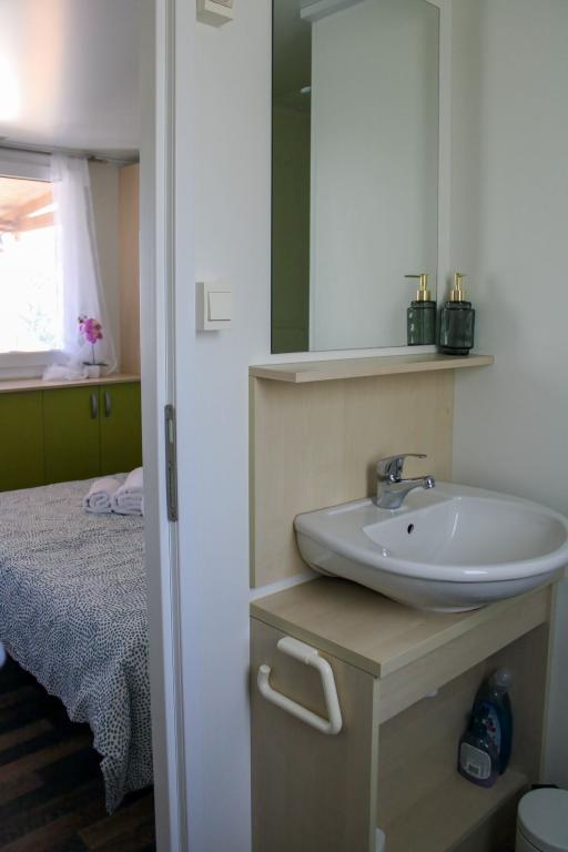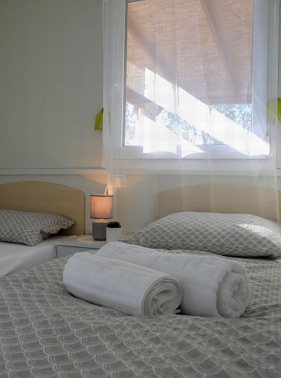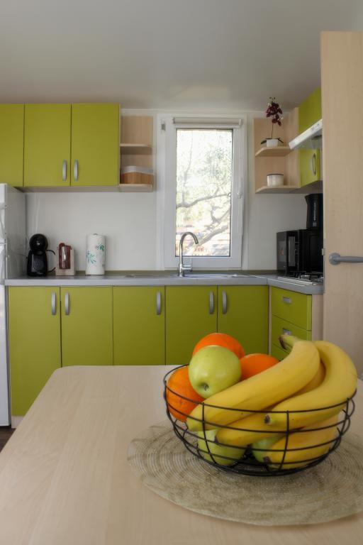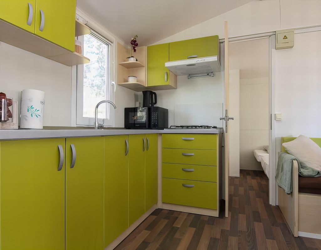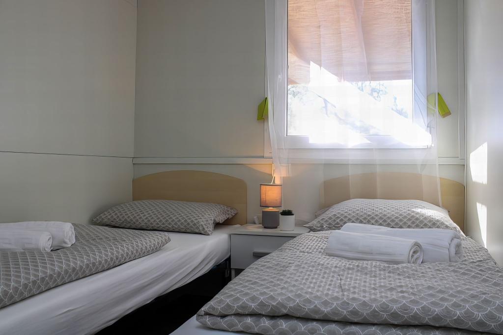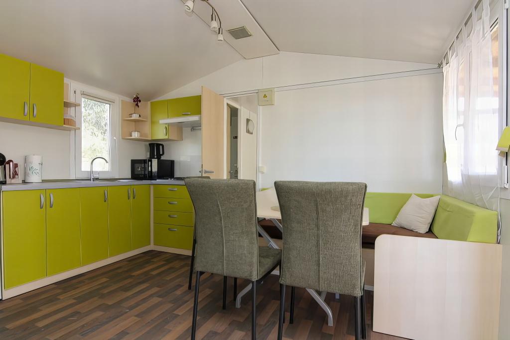 Mobilny dom o powierzchni 32 m2 położony jest w spokojnej części Pakoštane, 7-8 minut spacerem od centrum miasta i około 10 minut od plaży. Dom jest nowocześnie urządzony i w pełni wyposażony, posiada dwie sypialnie, każda z nich ma własną łazienkę z prysznicem/toaletą, kuchnię i salon. Dom posiada również klimatyzację i ogrzewanie. Drewniany taras o powierzchni 24 m2 z zestawem wypoczynkowym i stołem z 6 miejscami, nadający się do spożywania posiłków na świeżym powietrzu. Domek mobilny jest klimatyzowany, wyposażony w TV i dostęp do Internetu, pościel, ręczniki, naczynia, kuchenkę mikrofalową, czajnik i ekspres do kawy, a także moskitiery w oknach. Podgrzewane jacuzzi z leżakami i prysznicem na zewnątrz. Miejsca parkingowe znajdują się na prywatnym parkingu. Łóżeczko dziecięce i krzesełko do karmienia dostępne na życzenie. Dostępny grill.