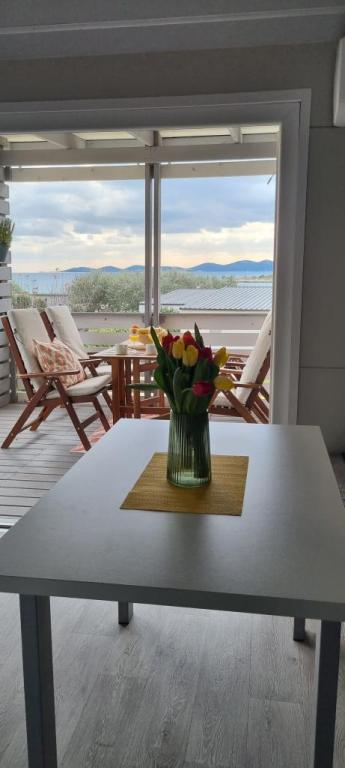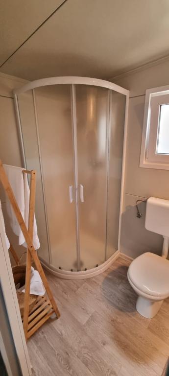 Domki mobilne położone są w centrum Pakoštane, tuż przy głównej piaszczystej plaży z bezpośrednim widokiem na morze. Domek mobilny posiada dwie sypialnie, jadalnię, kuchnię, toaletę i duży taras (5). Do dyspozycji gości jest grill. Do dyspozycji gości jest miejsce parkingowe. Zwierzęta domowe są akceptowane, ale obowiązuje dodatkowa opłata w wysokości 7 €/noc za zwierzę. Posiadamy własne miejsce do cumowania łodzi i parking dla przyczep kempingowych, które są dostępne dla gości za dodatkową opłatą.