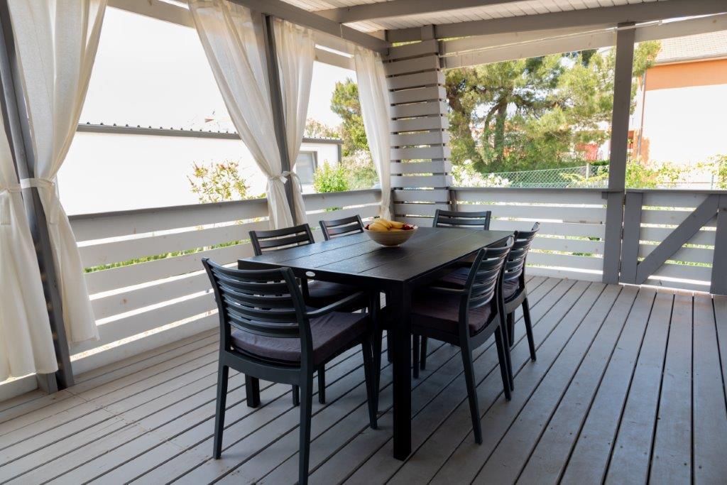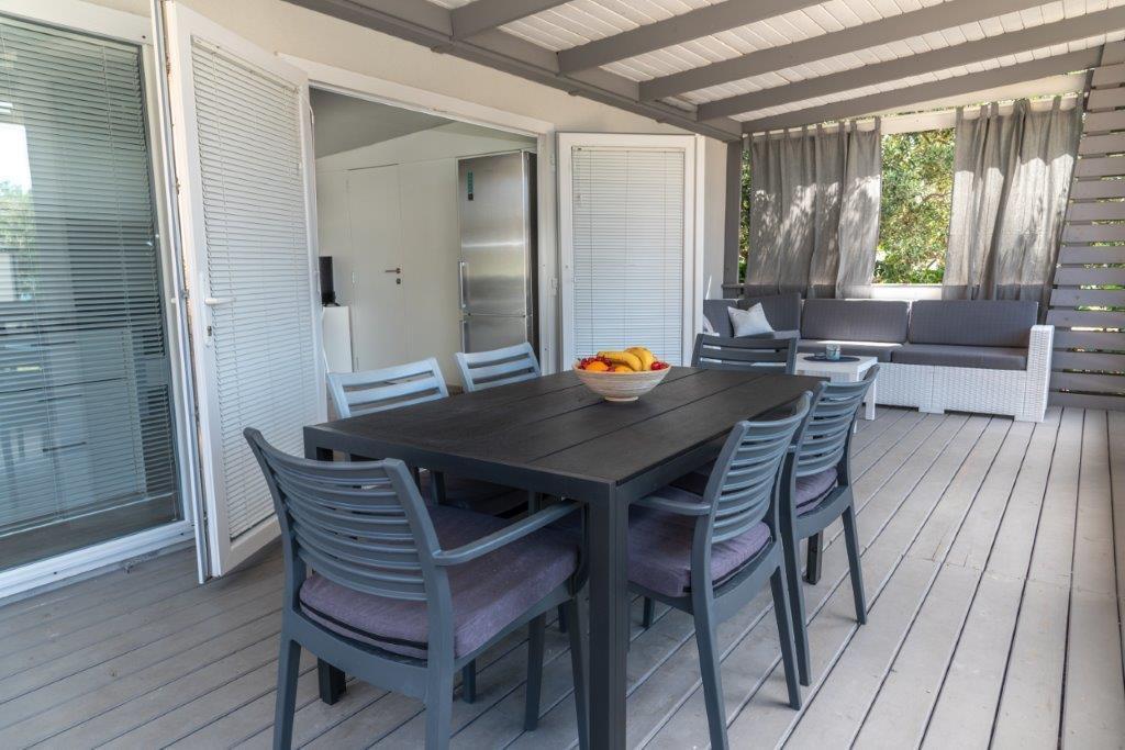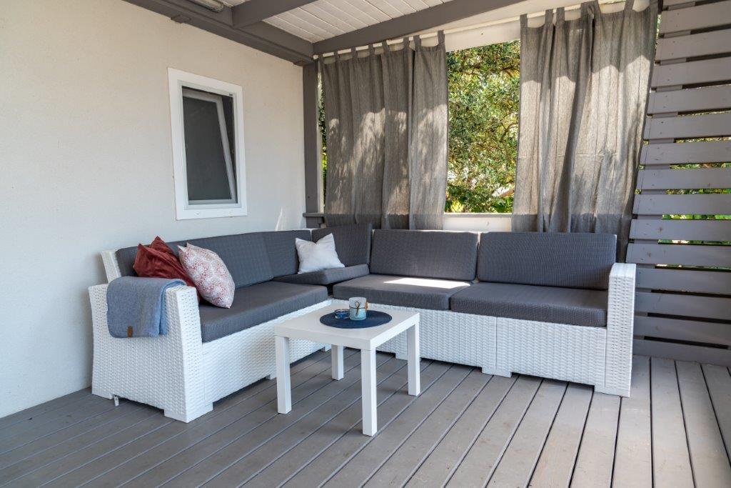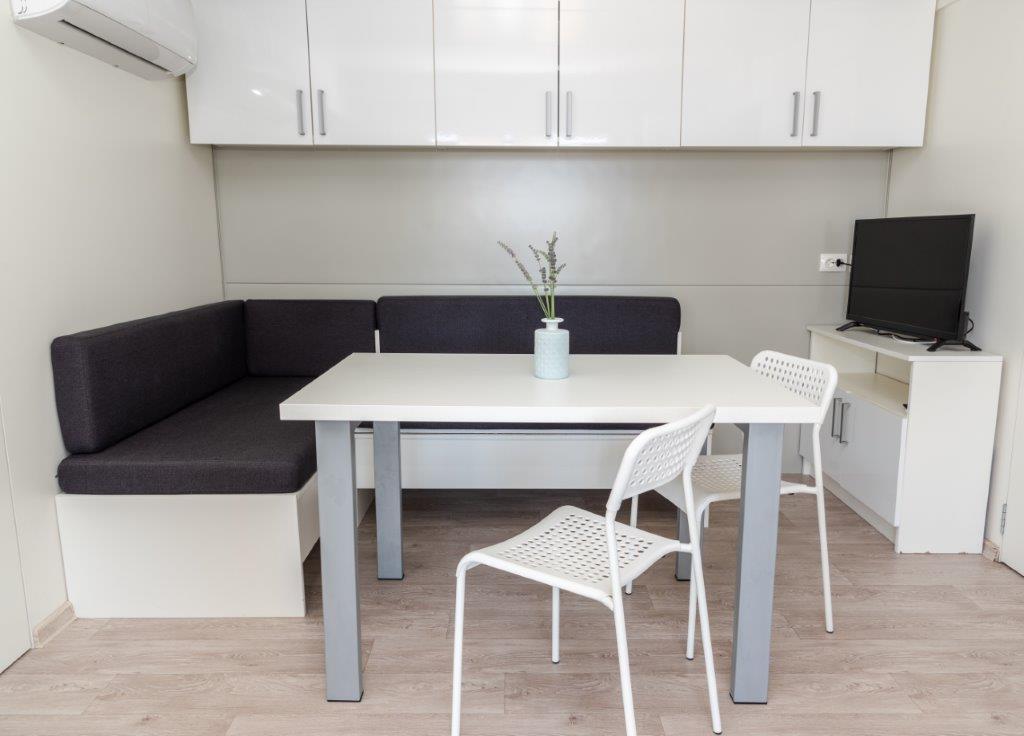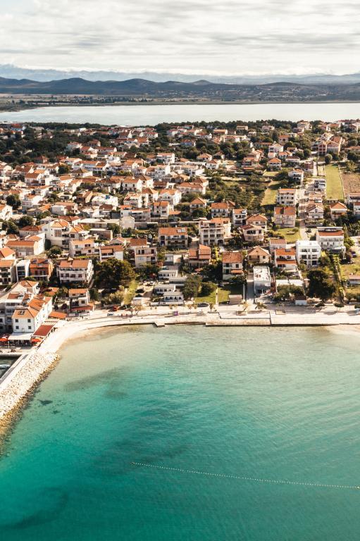 Domki mobilne położone są w centrum Pakoštane, tuż przy głównej piaszczystej plaży z bezpośrednim widokiem na morze. Domek mobilny posiada dwie sypialnie, jadalnię, kuchnię, toaletę i duży taras (5). Do dyspozycji gości jest grill. Do dyspozycji gości jest miejsce parkingowe. Zwierzęta domowe są akceptowane, ale obowiązuje dodatkowa opłata w wysokości 7 €/noc za zwierzę. Posiadamy własne miejsce do cumowania łodzi i parking dla przyczep kempingowych, które są dostępne dla gości za dodatkową opłatą.