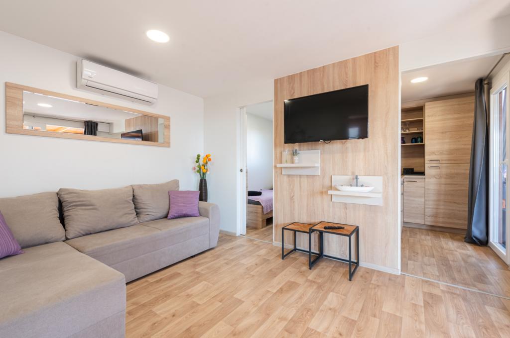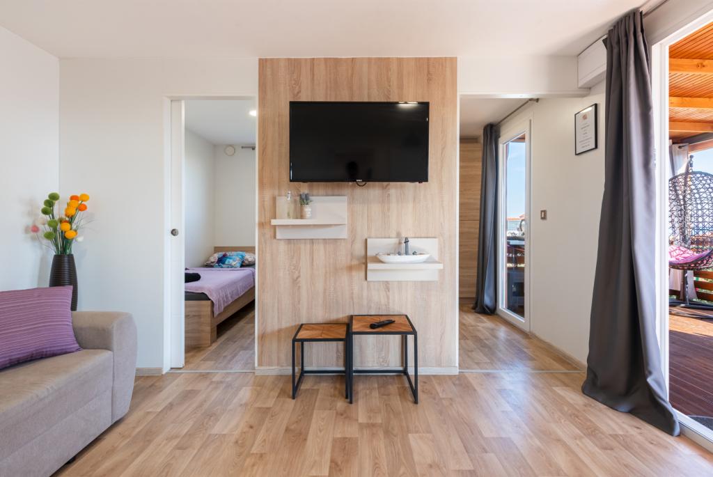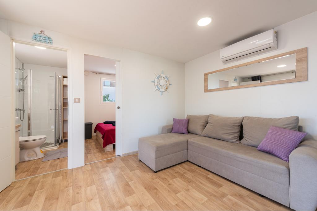 Domek mobilny Seashell położony jest w pięknym dalmatyńskim mieście Pakoštane. Sam dom położony jest na prywatnym obozie Mara, zaledwie 2-3 minuty spacerem od głównej plaży. Dla pełnej i niezakłóconej zabawy naszych drogich gości zapewniliśmy klimatyzację, WiFi we wszystkich pokojach i na tarasie, duży grill gazowy, TV+ (HBO), prywatny parking na dwa pojazdy oraz duży (24m2) i zadaszony taras . Kemping Mara położony jest w samym centrum Pakoštane, zaledwie dwieście metrów od głównego nabrzeża i plaży. Obóz i dom położone są w ślepej uliczce, w bardzo cichej i przyjemnej okolicy. ZAMELDOWANIE: od 14:00 WYMELDOWANIE: do 10:00