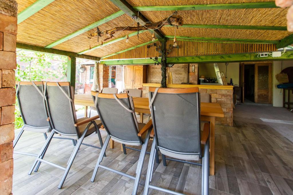 Dom wakacyjny składa się z dwóch pokoi i antresoli z łóżkiem małżeńskim, pokoju dwuosobowego z dwoma oddzielnymi łóżkami i dostawką dla dwóch osób. Posiada dwie łazienki, kuchnię i przestronny salon. Możliwość korzystania z basenu zewnętrznego, sauny i jacuzzi, wi-fi, max-tv, parking. W otoczeniu zieleni znajduje się zadaszony taras zewnętrzny z grillem, piekarnikiem, czajnikiem, szaszłykami. Dostępne są gry planszowe, karciane, człowieku nie złość się, badminton z siatką, łuk i strzały, rzutki, trampolina i huśtawki dla dzieci.