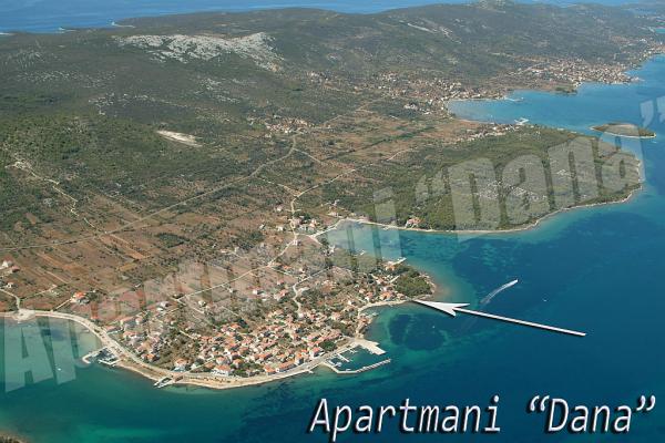 Apartamenty położone są blisko morza w spokojnej okolicy Pašman, w pierwszym rzędzie (5 m) od morza. Przed apartamentem znajduje się wejście do morza po betonowych schodach. Restauracje, sklepy i inne plaże znajdują się w odległości około 50 - 200 m od domu (5 - 15 min. spacerem).