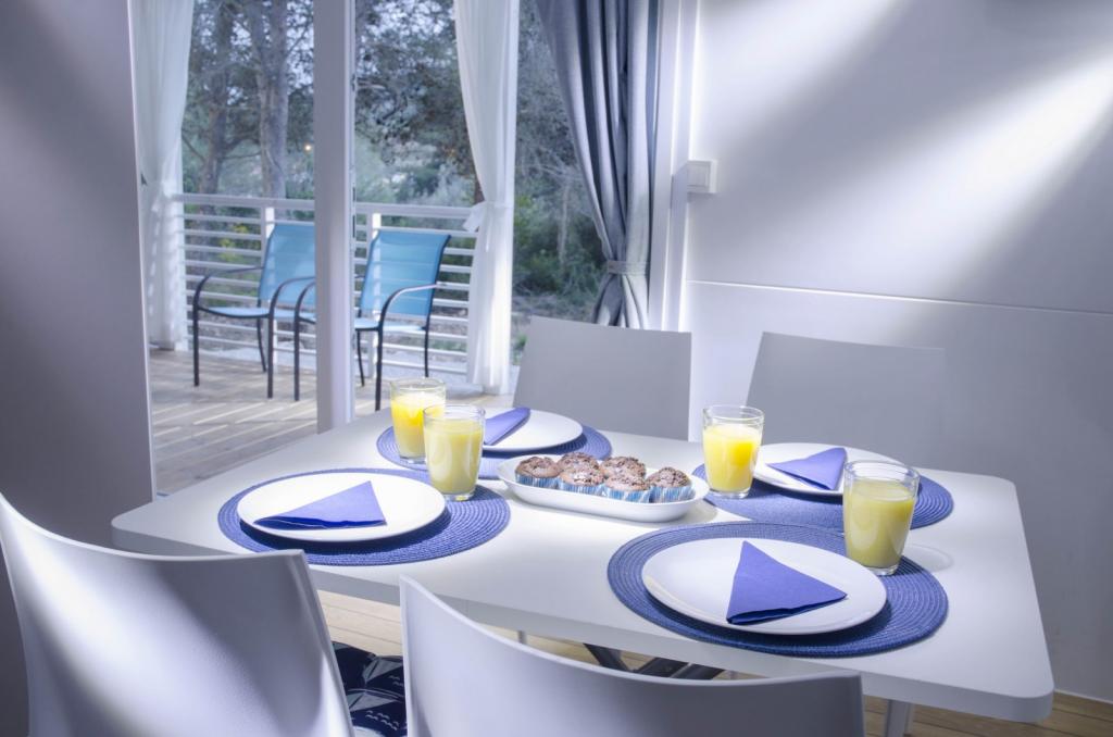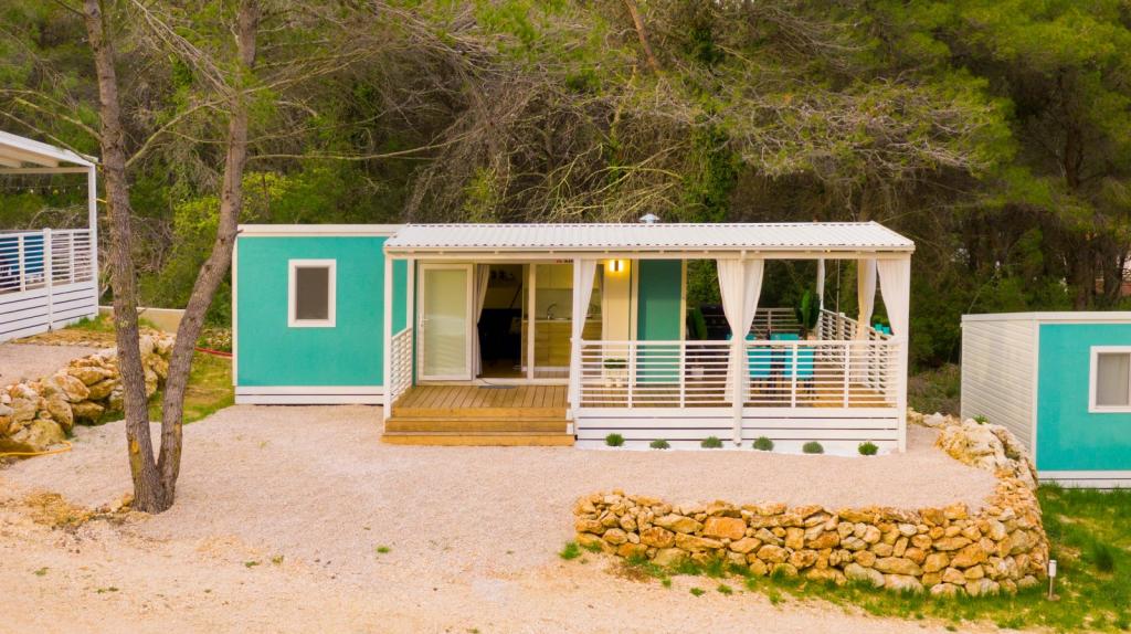 30 m2 powierzchni domu i 31 m2 powierzchni tarasu dla czystej przyjemności wszystkich zmysłów. Oddychaj czystym morskim powietrzem i ciesz się cieniami sosnowego lasu. Ten dom wakacyjny jest idealny dla całej rodziny, a szersza lokalizacja oferuje wiele możliwości trekkingu, jazdy na rowerze lub wędkowania. W domu znajduje się pokój z podwójnym łóżkiem, pokój z dwoma osobnymi normalnymi łóżkami, łazienka z prysznicem i WC, kuchnia z dużą lodówką, zmywarką, kuchenką gazową, czajnikiem i wszystkimi innymi potrzebami, część wspólna ze stołem jadalnym, wysuwana sofa z podwójnym łóżkiem, telewizorem i klimatyzacją oraz duży taras z drugim stołem, miejscami do siedzenia i dużymi białymi zasłonami zapewniającymi poczucie prywatności i romantyzmu. Obiekt posiada internet Wi-Fi.