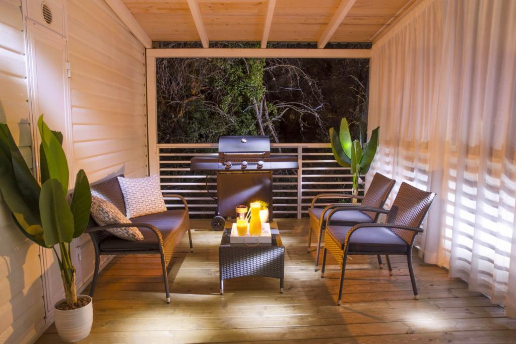 Piękna przyczepa stacjonarna z super tarasem w spokojnej okolicy. Dostępne wszystko, czego rodzina potrzebuje na wakacjach, super L taras, wystarczająco dużo krzeseł i dwa wygodne leżaki. Grill jest świetny. Jeśli chodzi o psa, mogliśmy go mieć przy sobie. Gorąco polecam. Rudi