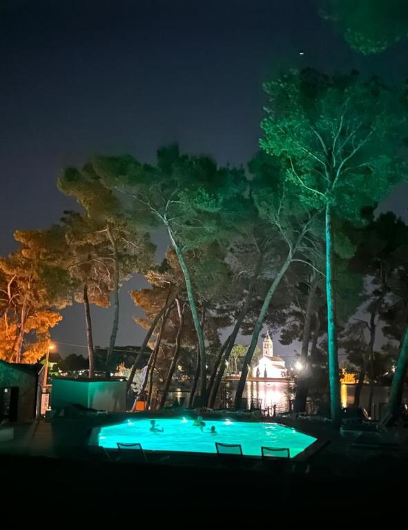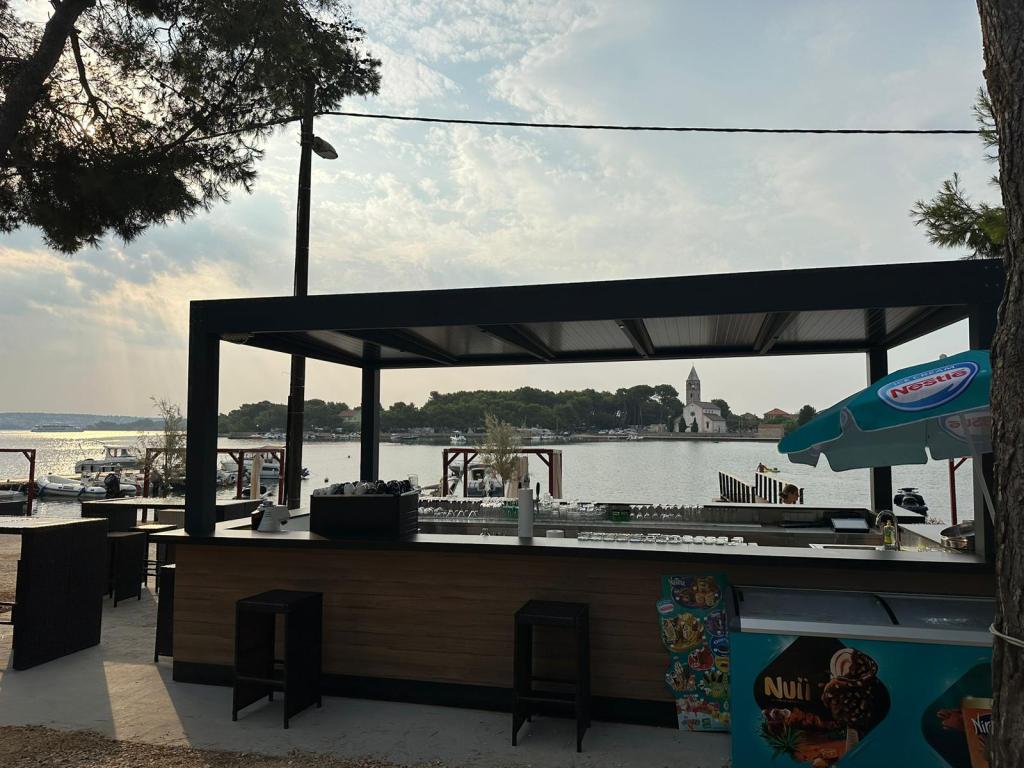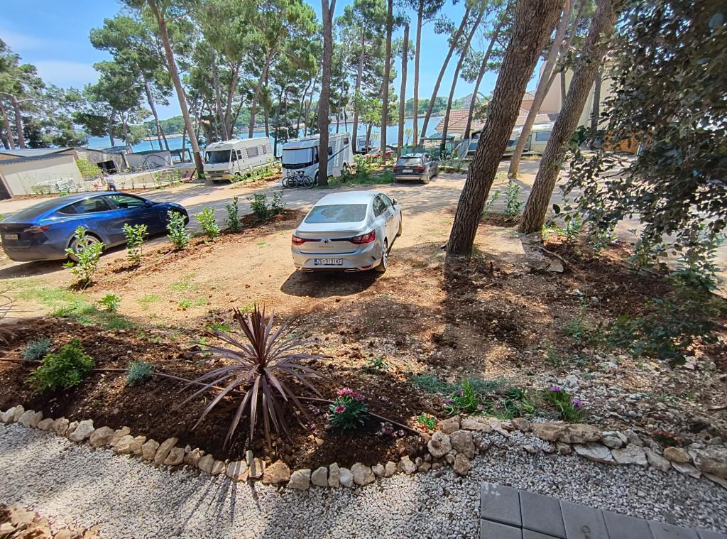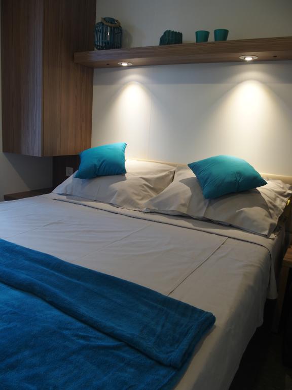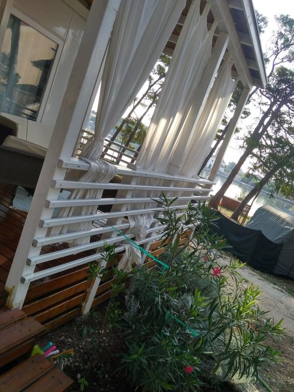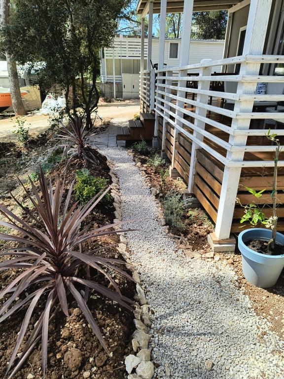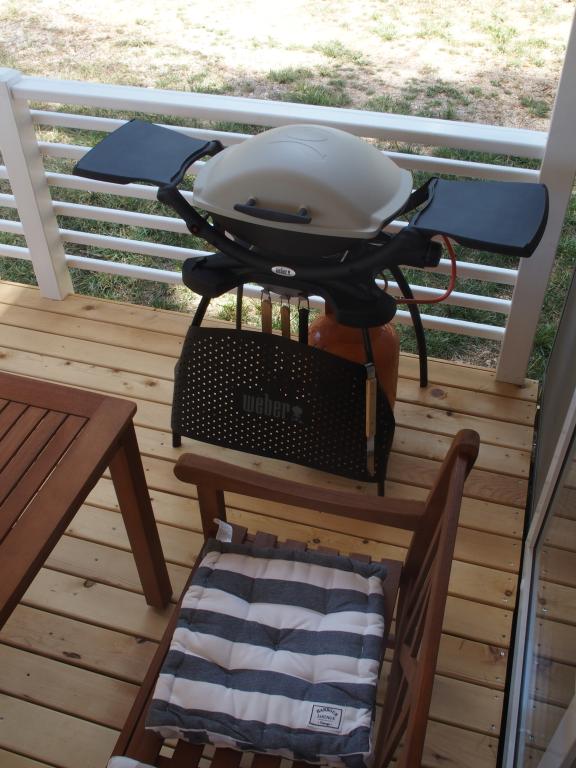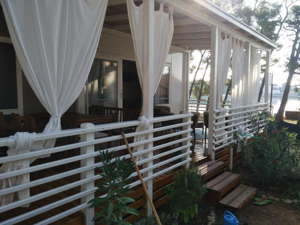 Luksusowy dom mobilny położony jest w naturalnym, głębokim cieniu lasu sosnowego, zaledwie 20 metrów od piaszczystej plaży. Z dużym, otwartym tarasem z widokiem na morze, 2 sypialniami, w pełni wyposażoną kuchnią i łazienką oraz dużym salonem z dodatkową rozkładaną sofą, ten dom wakacyjny to idealny wybór na relaksujący, rodzinny wypoczynek. Zapewnia komfortowe zakwaterowanie dla 4 osób, a maksymalna pojemność to 4 + 1. Taras posiada część wypoczynkową, stół jadalny dla maksymalnie 6 osób oraz grill gazowy. Zaledwie 20 metrów dalej znajduje się piękna i bezpieczna plaża z piaszczystym dnem, która rozciąga się od jednego krańca zatoki do drugiego. Wzdłuż wybrzeża, w promieniu kilku kilometrów w obie strony, znajdują się inne plaże o różnym charakterze, które można zwiedzać. Na terenie kempingu Goście mają dostęp do basenu z umeblowanym miejscem do opalania z bezpłatnymi leżakami, a także do kawiarni-baru. Taras domu jest tak położony, że roztacza się z niego otwarty widok na całą zatokę i basen.