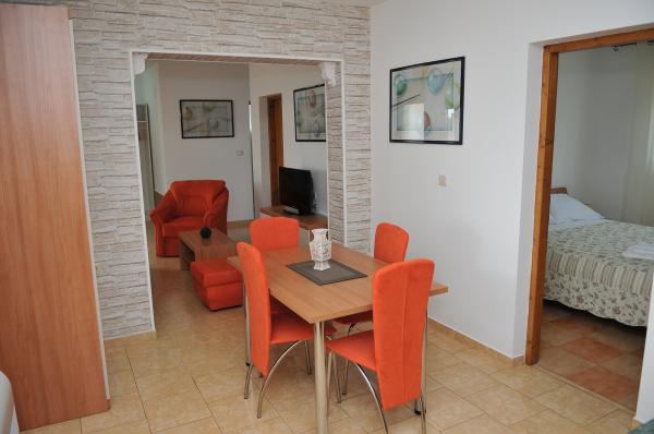 Dom położony jest w Peroj, 100 metrów od plaży. Woda morska piękne ścieżki przyrodnicze. Apartamenty są w pełni wyposażone i bardzo przyjemny w czasie gorących letnich miesięcy. Dwa apartamenty posiadają taras z widokiem na morze. Mieszkanie na parterze jest przestronny i ma trzy sypialnie; w dwóch z podwójnym łóżkiem i jednym łóżko dla małego dziecka. Istnieje możliwość dostawki w salonie. Każdy apartament posiada własne miejsce parkingowe.