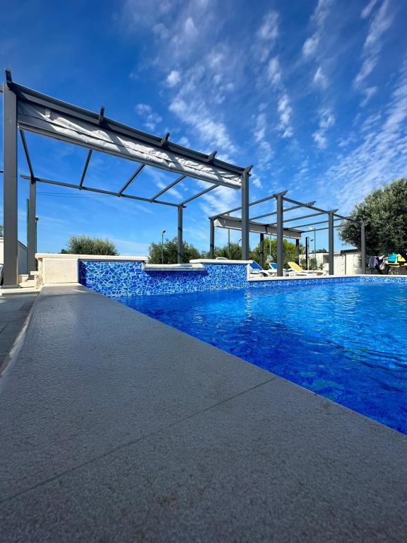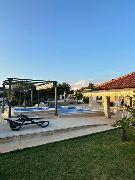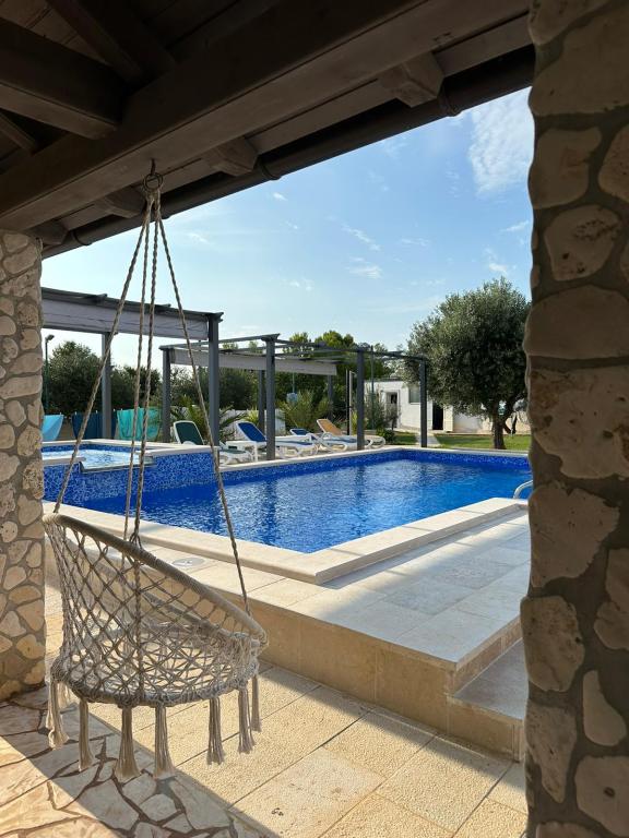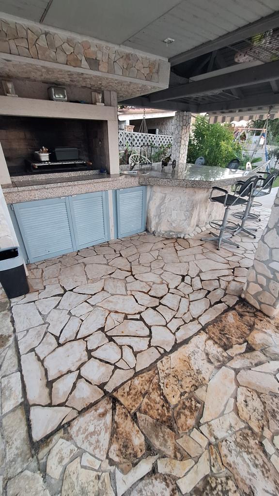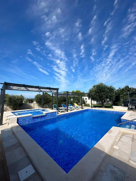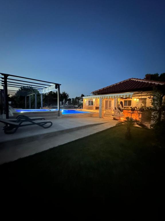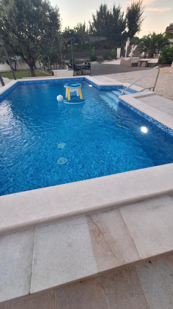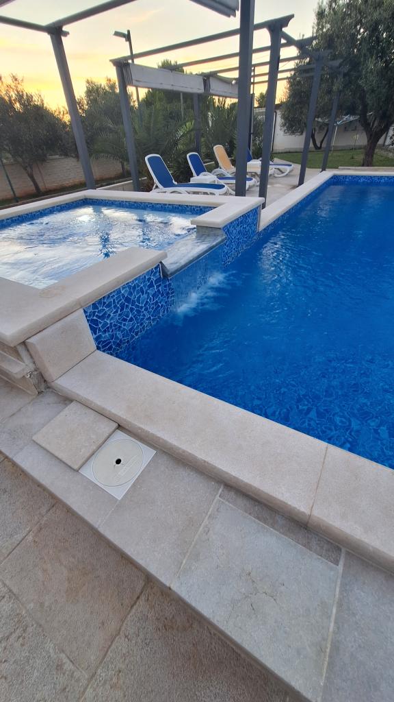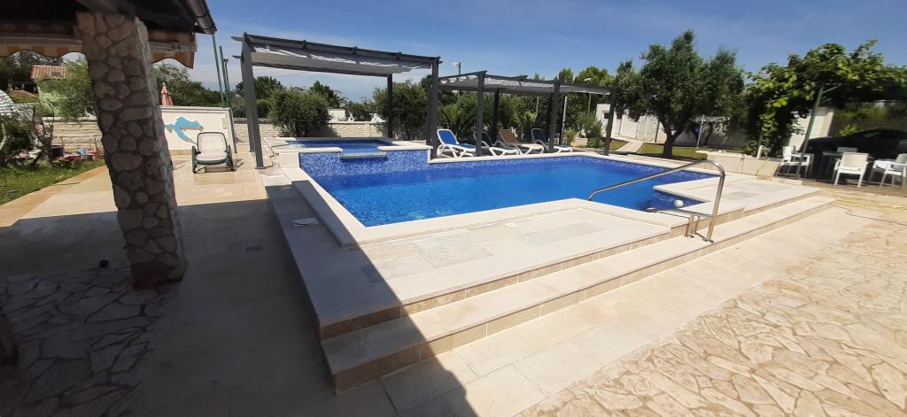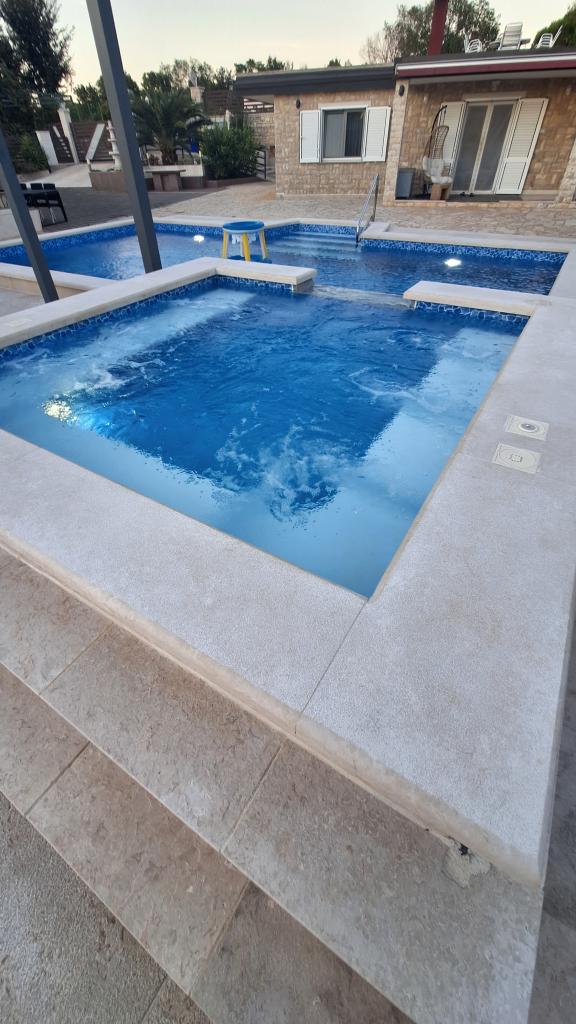 Dom wakacyjny z podgrzewanym basenem i basenem z hydromasażem i sztucznym wodospadem. Basen ma wymiary 8x4 m, a basen z hydromasażem 3x3 m. Obiekt znajduje się 200 metrów od plaży. W pobliżu znajduje się restauracja, marina do cumowania łodzi oraz plaża dla zwierząt. Na terenie obiektu znajduje się grill i parking na 3 samochody.