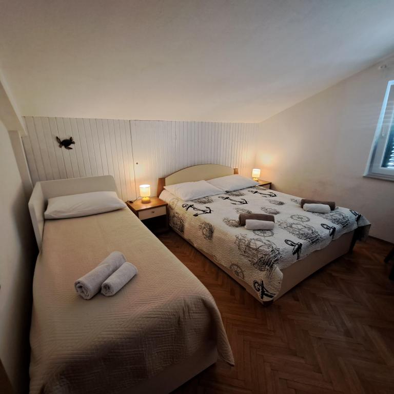Zadbane, przyzwoicie urządzone i niezwykle funkcjonalne lokum. Gospodarze niezwykle uczynni i serdeczni, a to, co zachwyca najbardziej to lokalizacja - do najbliższej plaży minuta, dwie spacerkiem, a w zasięgu 5 minut spacerkiem kilka różnych plaż, każdy znajdzie coś dla siebie. Równie łatwo można dojść promenadą, aby dostać się do centrum tego ładnego dalmatyńskiego miasteczka.