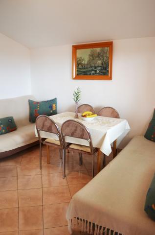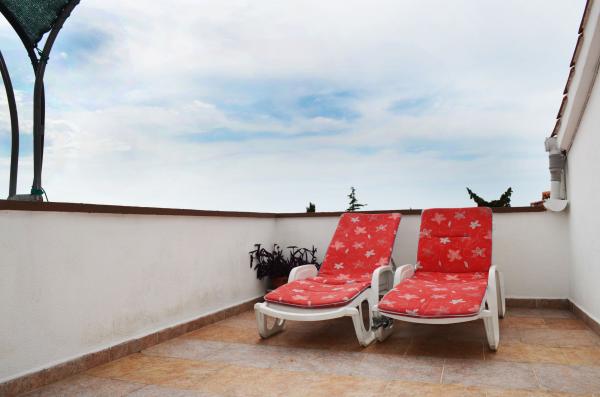 Spokojny i spokojnej okolicy, z dala od obiektów (restauracje, sklepy i plaże). Na plaży jest to niezbędne do prowadzenia samochodu (3-4 min.), Spacery (30 minut). Mieszkanie jest idealne dla rodzin, którzy poszukują prywatności i spokoju. Właściciele są przyjaźni, pomocni i bardzo przyjazny. Apartament był dobrze wyposażony odpowiednio do pięciu osób z możliwością samodzielnego przygotowywania posiłków zmianą sposobu użytkowania i pralką. Zaleta posiada balkon z widokiem na morze. W obiekcie jest również obręcz do koszykówki.