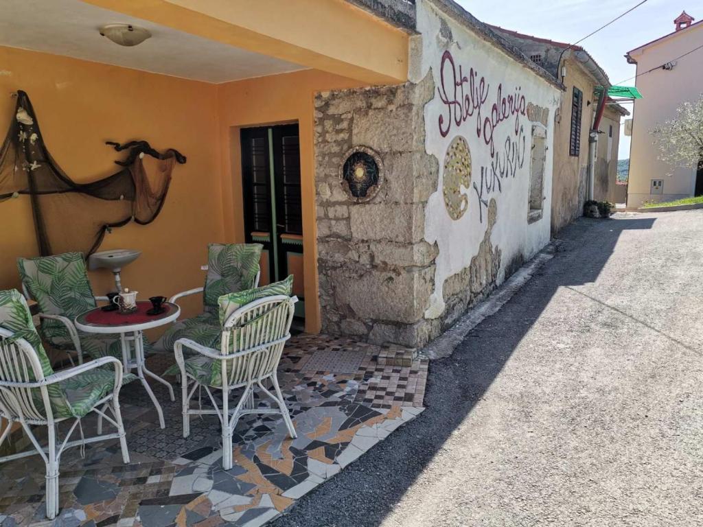 Apartament znajduje się w miejscowości Kukurini, w mieście Pićan w środkowej Istrii. Jest urządzony w artystycznym, staro-istryjskim stylu (stary kamienny dom w Istrii). Mieszkanie posiada balkon i taras oraz miejsce na grilla (kuchnia letnia). Goście mogą obejrzeć galerię studia oraz kupić dzieła sztuki i pamiątki u gospodyni Barbary Špiljak Presečki. Zapewniony parking. W pobliżu sklep i poczta.
