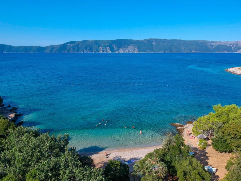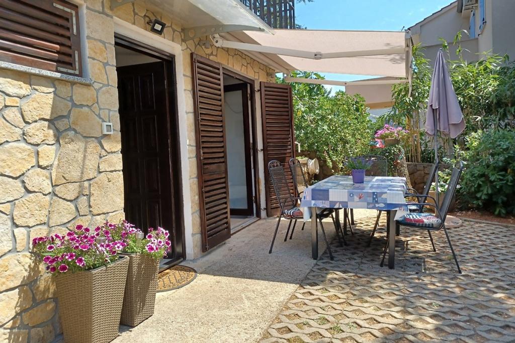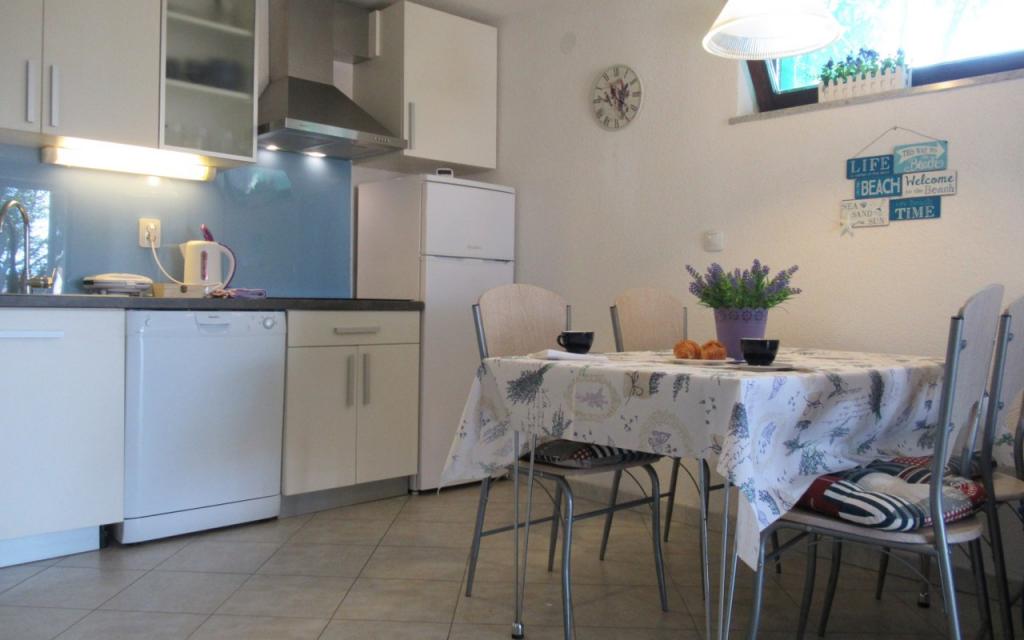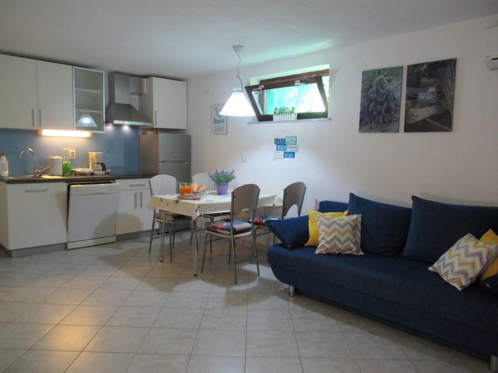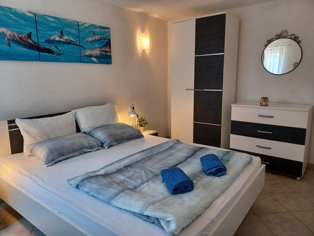 W małej miejscowości Pinezići wynajmujemy nowoczesny i przytulny apartament z osobnym wejściem, położony na parterze domu rodzinnego, przy cichej uliczce z dala od głównej drogi. Teren wokół domu jest ogrodzony i otoczony zielenią. Apartament składa się z dwóch sypialni dwuosobowych z wygodnym łóżkiem małżeńskim (160x200 cm), salonu z aneksem kuchennym i rozkładaną sofą (160x200 cm), toalety, oddzielnej kabiny prysznicowej oraz pokoju z łazienką. Apartament wyposażony jest w Google TV (telewizja satelitarna), lodówkę z zamrażarką, zmywarkę, klimatyzację, kuchenkę elektryczną, pralkę, sejf oraz bezpłatne Wi-Fi. Morze ma piękny turkusowy kolor i jest niezwykle czyste. Plaża jest kamienista i żwirowa, zapewniając wystarczająco dużo cienia. Na terenie obiektu znajdują się również 2 bary plażowe i aquapark. Plaża znajduje się 700 m od apartamentu. Sklep oddalony jest o 150 metrów, a duże centra handlowe w mieście Krk oddalone są o około 12 km. Port Valbiska, łączący wyspę Krk z sąsiednimi wyspami, oddalony jest o 2 km. Obiekt odpowiedni na dłuższe pobyty. Zapraszamy!