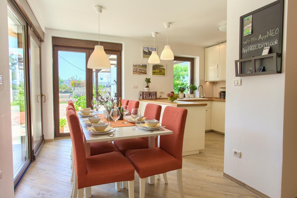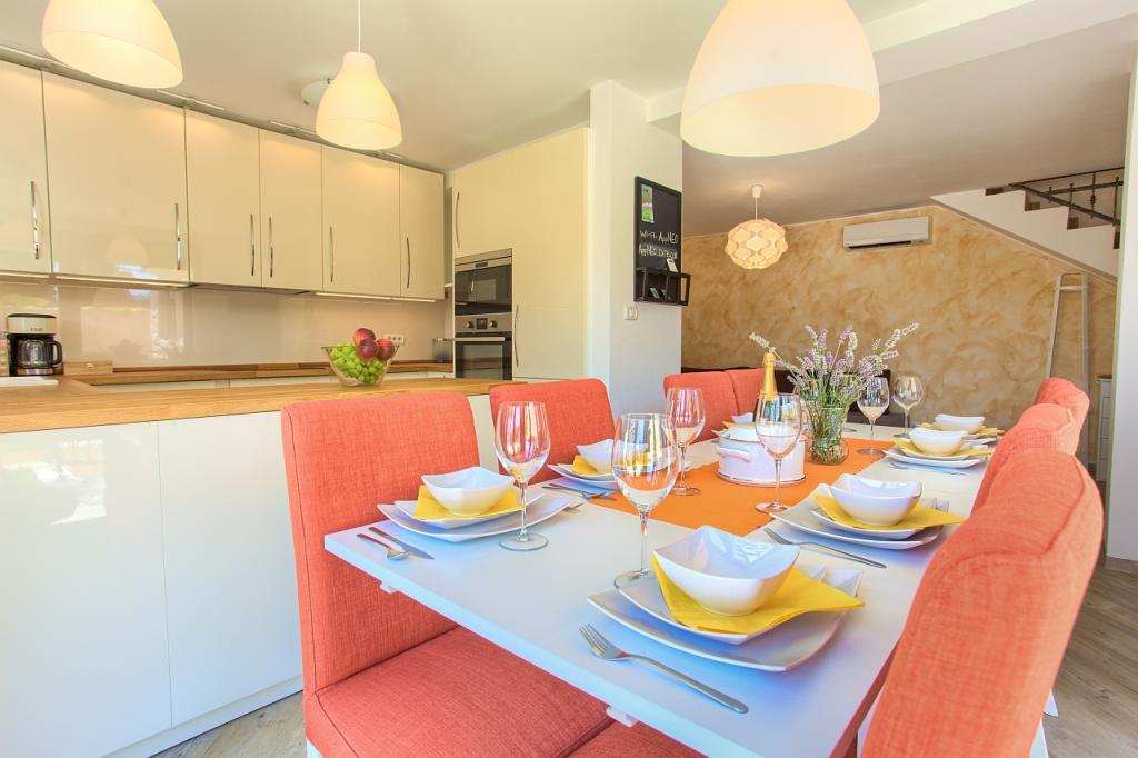 Kamienna willa / apartament W pełni wyposażony apartament, położony 600 metrów od pięknej plaży. Apartament z trzema sypialniami, wszystkie z podwójnymi łóżkami i 2 łazienkami, jadalnią i salonem z rozkładaną sofą, dużym telewizorem LED 3D. W pełni wyposażona kuchnia z piekarnikiem, zmywarką, mikrofalówką, płytą indukcyjną, tosterem, ekspresem do kawy, pralką. Sejf, dwa klimatyzatory - jeden na parterze do kuchni, jadalni i salonu, drugi na piętrze gdzie sypialnie znajdują się w przedpokoju. Na podwórku znajduje się grill, prysznic solarny, jadalnia na świeżym powietrzu, parking na trzy samochody. Jeden taras na parterze i jeden mniejszy taras na piętrze z dostępem z dwóch pokoi. Biuro turystyczne i informacja znajdują się 20 metrów od hotelu, a także plac zabaw dla dzieci. Dwa mniejsze sklepy znajdują się zaledwie 100 m od domu. Boisko do koszykówki oddalone jest od apartamentów o 200 metrów, a plaża i przystań - o 600 metrów. Uwaga: właściciel i jego rodzina korzystają z mieszkania w tym samym domu.