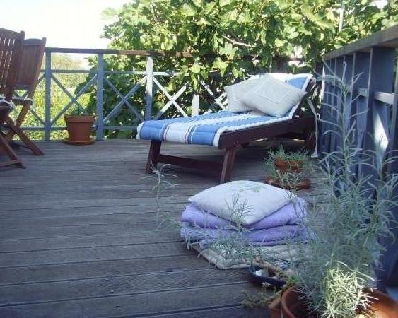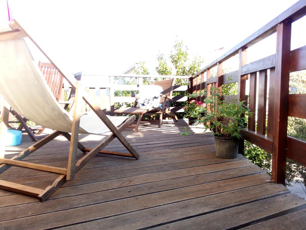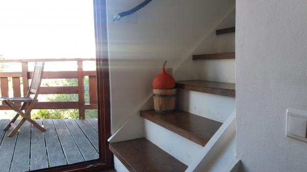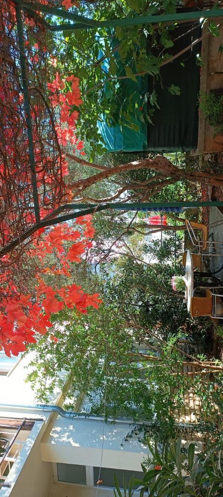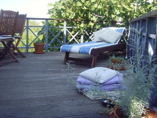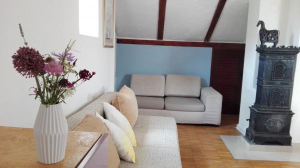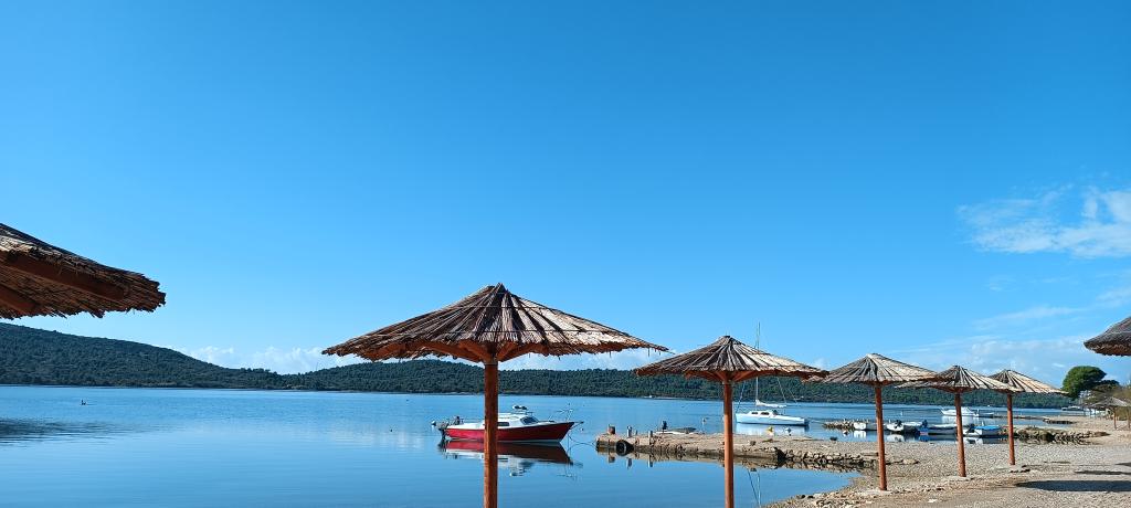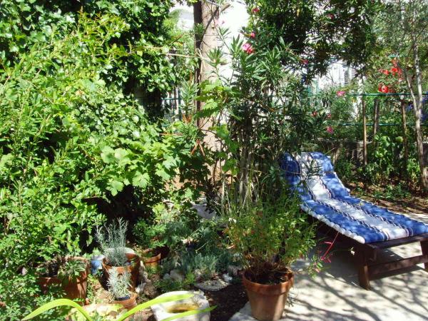Apartament Log Inn znajduje się na pierwszym piętrze domu z dwoma apartamentami, w cichej, rodzinnej uliczce. Ogród domu jest zacieniony drzewami oliwnymi, figowymi i sosnami, a na podwórku znajduje się miejsce parkingowe. Centrum miasta ze sklepami, piekarniami, cukierniami, kawiarniami i restauracjami znajduje się 10 minut spacerem, a pierwsza kamienista plaża oddalona jest o zaledwie 5-10 minut spacerem. W Log Inn przyjemnie jest przebywać niezależnie od pogody – jest przestronny i posiada oddzielny pokój z salonem z zabawkami i książkami z obrazkami. Apartament jest dobrze wyposażony (naczynia, czajnik, ekspres do kawy, telewizor Max-TV, Wi-Fi, klimatyzacja), a wiosenne wieczory w salonie można zrelaksować się przy kominku opalanym drewnem. Taras z meblami ogrodowymi jest przyjemny, a goście chętnie jedzą na nim śniadania, opalają się lub spędzają wieczór. Studio jest mniejsze i ma mniejszy aneks kuchenny, ale dzięki ogrodowi jest przyjemne nawet w letnie upały. W apartamencie znajduje się wyposażenie dla niemowląt: łóżeczko turystyczne, łóżeczko dziecięce, zabawki, mata itp. Oba apartamenty posiadają klimatyzację i ogrzewanie. Poza sezonem są wynajmowane z rabatem i na raty miesięczne.
