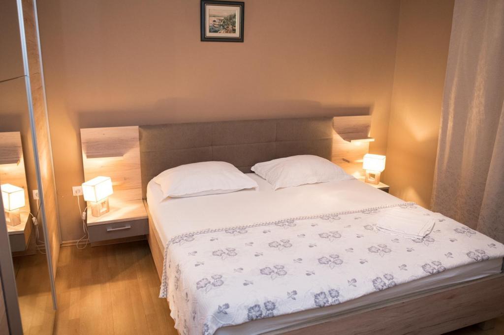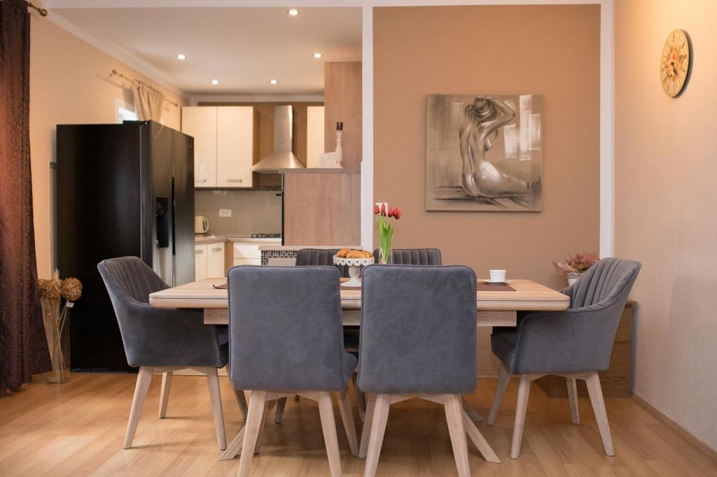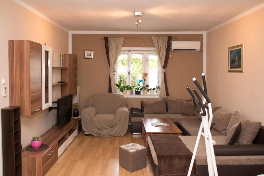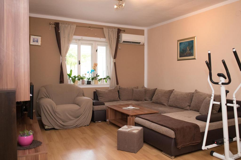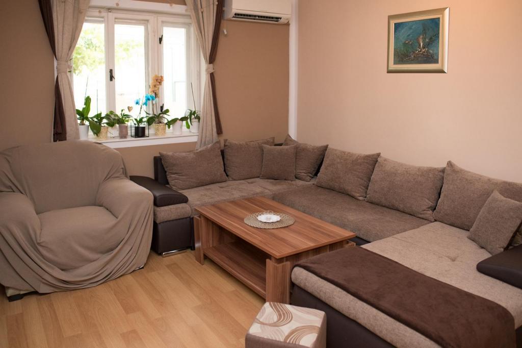Apartament Matea znajduje się w pobliżu głównej plaży Lolić w Pirovac, a także w samym centrum miasta. Bezpieczny parking pozwala na wakacje bez konieczności korzystania z samochodów i codziennego tłumu, tworząc poczucie relaksu. To, co czyni ją piękną, to rodzinna atmosfera wnętrza, a także poczujecie radość z bliskości ukochanych osób na wakacjach. Apartament składa się z pokoju trzyosobowego, dwuosobowej sypialni z łazienką z prysznicem z hydromasażem i podwójną umywalką, przestronnego salonu z wygodnym narożnikiem, kuchni i jadalni. Taras jest bogaty w naturalny cień, zielone liście i wiele kwiatów, które przypominają wszystkie krasnoludy Dalmacji. W letnie wieczory można korzystać z grilla, aby Twoje wakacje były jeszcze piękniejsze i bardziej relaksujące.