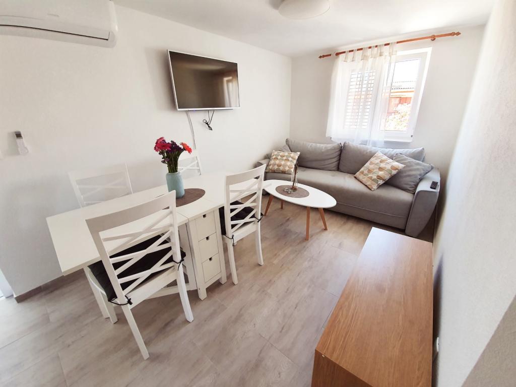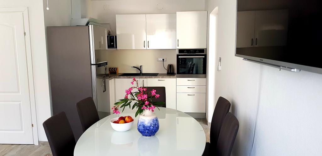 Apartament świetnie wyposażony. Duża lodówka, zmywarka, piekarnik oraz mikrofalówka + wszystko co potrzebne w kuchni Wygodne łóżka, czysto i schludnie. Gospodarze pomocni i bardzo mili. Świetny kontakt! Spokojna okolica i pyszne figi na wyciągnięcie ręki. Niespodzianka powitalna dla gości. Idealna baza wypadowa do Zadaru, Trogiru i Vodic czy na wycieczki na Kornati, Krka i inne. Polecam piękną wyspę Murter z cudowną plażą Riva Podvrške oddaloną o 25 min drogi samochodem. Polecam bardzo gorąco!