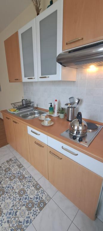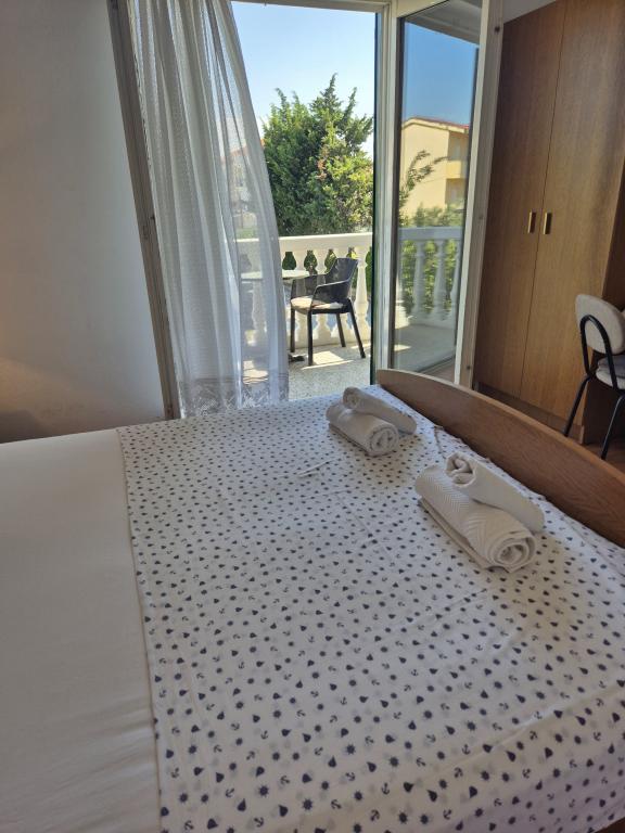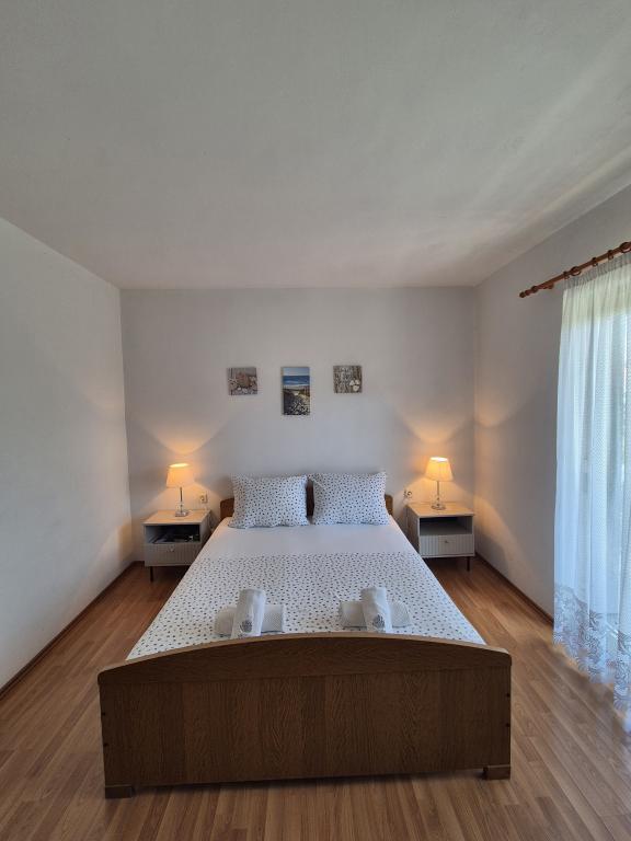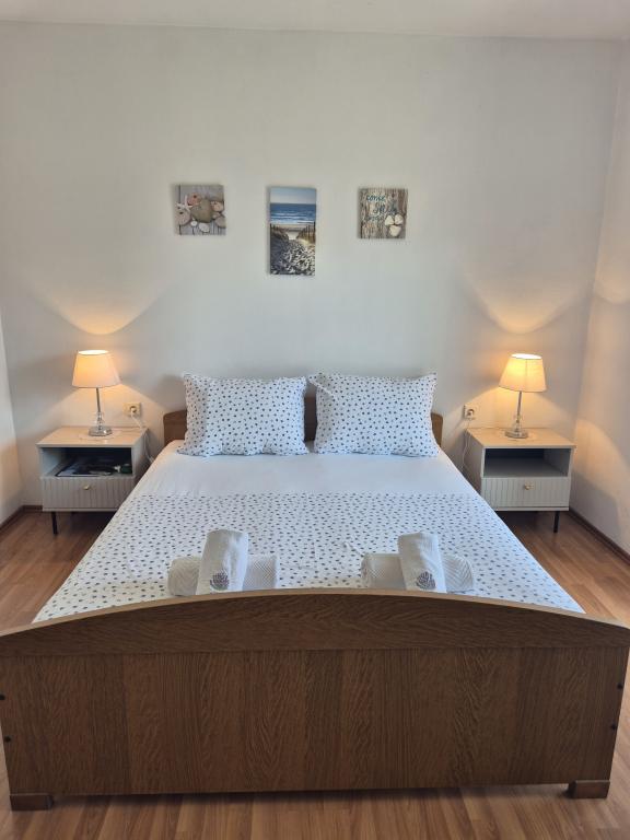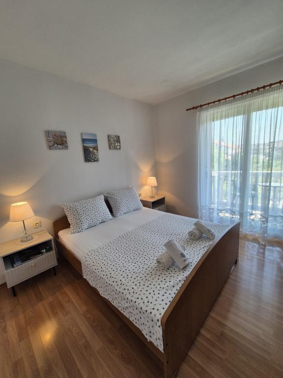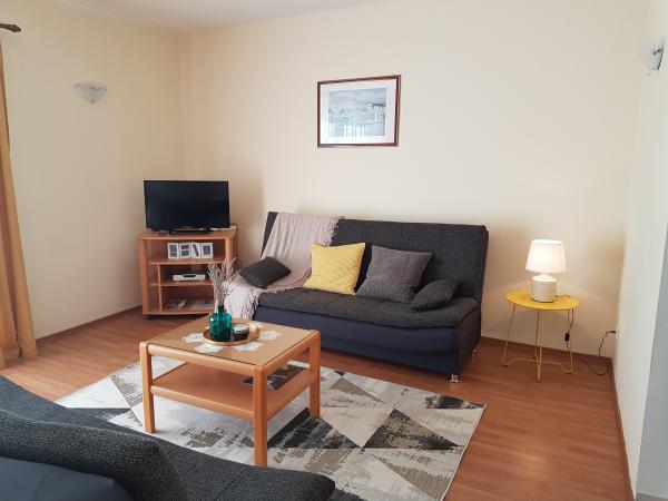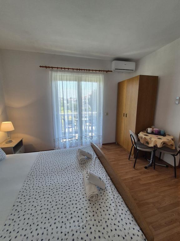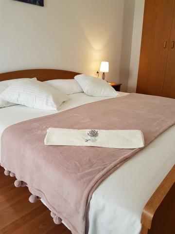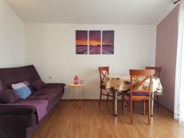 Apartamenty Kristina znajdują się zaledwie 150-200 m od centrum i plaży, są dość przestronne, z licznymi udogodnieniami, aby goście czuli się komfortowo i jak w domu. Wszystkie trzy apartamenty są w pełni wyposażone w kuchnię, salon (wszystkie sofy są rozkładanymi łóżkami), klimatyzację, telewizor (kanały satelitarne). Dwa apartamenty o powierzchni 90 m² (na 1. i 2. piętrze) są jasne, przestronne, z tarasem o powierzchni 20 m² z widokiem na morze i mają dwie przestronne sypialnie, a każdy pokój ma łazienkę i wentylator. Apartament o powierzchni 40 m² ma balkon o powierzchni 5 m². Jest jedna sypialnia o powierzchni 15 m² z łazienką, klimatyzacją i lodówką (na korytarzu). Bezpłatne Wi-Fi jest dostępne w całym obiekcie, a na korytarzu przy wejściu znajduje się mała biblioteka (półka z broszurami, książkami w kilku językach obcych, czasopismami). Przed domem znajduje się duży parking. Rezerwacje, warunki i więcej, patrz Notatki. Kalendarz rezerwacji jest aktualizowany. Czekamy na Państwa przybycie!
