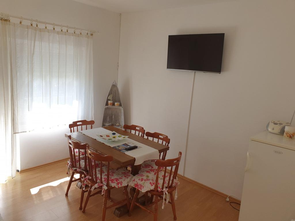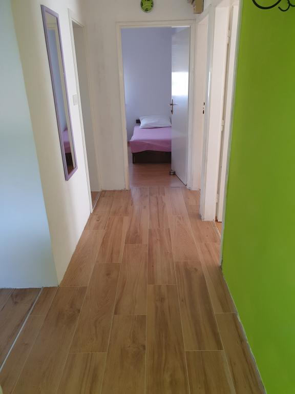Dom znajduje się w atrakcyjnym części miasta. Drugi rząd od morza i plaży Lolić. Budynek posiada dwa apartamenty do wynajęcia. Większa dla 6 zajmuje całe piętro. Ma osobne wejście i jest odpowiedni dla 2 rodzin z dziećmi. Składa się z dwóch sypialni i salonu. Apartament posiada taras 50m2 ze stołem i krzesłami dla 4 osób oraz plastikowego okrągłego stołu dla 4 z widokiem na morze i naturalnym odcieniu. Małe mieszkanie na parterze przeznaczony jest dla 2 osób. Ma rozkładaną sofę w salonie. maksymalnie 4 osób :. Z osobnym wejściem i należy do części tarasu, który wspólnie z właścicielami. Parking jest dostępny w przedniej części domu, w którym znajduje się grill do dyspozycji gości. Sklep znajduje się w odległości zaledwie 10 metrów, a do centrum około 400 metrów. Lokalizacja jest doskonała do zwiedzania pobliskich większych miast-Vodice, Murter, Sibenik, Wodospady Krka, z jednej strony, a Pakostane, Kornati, Biograd i Vrana jeziora po drugiej stronie