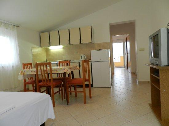 Cicha okolica, bardzo mili właściciele .. Całe miejsce jest bardzo czyste i schludne, a także apartament, w którym mieszkaliśmy. Kilka minut spacerem do plaży, która ma odcień i jest odpowiedni zarówno dla dzieci jak i dorosłych. W każdym razie, polecam!