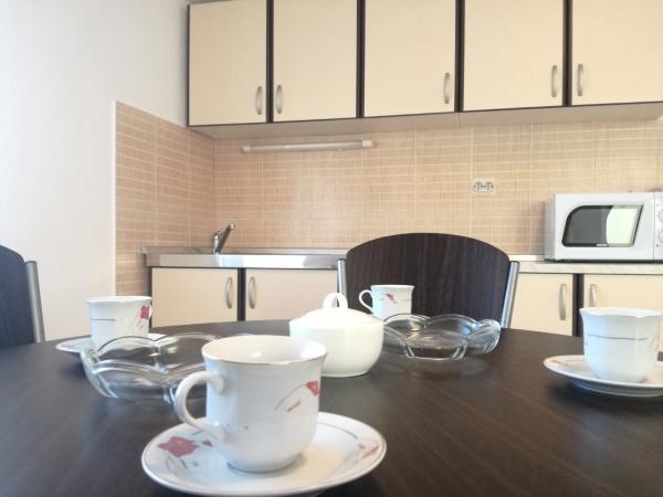 Kompletne apartamenty w spokojnej okolicy, położone w trzecim rzędzie od morza; Obiekt położony jest 10 minut spacerem do centrum i 5 minut spacerem do głównej plaży z sosnowym lasem. Parking zapewniony (jeden pojazd na apartament).