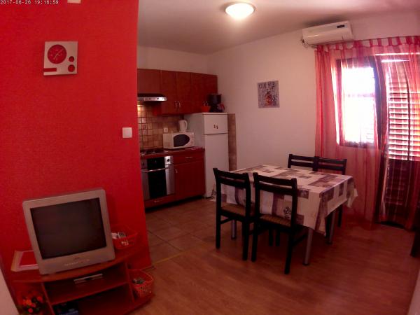 Opłata jest wliczone w cenę. Dokument potwierdzający rezerwację przy rezerwacjiTo, jak ci wspaniali ludzie nas przyjęli, trudno opisać słowami – wspaniali, mili, zawsze dostępni. Nawet nie zdążyliśmy dobrze dotrzeć, gospodarz, pan Neven, wniósł dwie walizki na pierwsze piętro do apartamentu jak młody człowiek, częstując figami… a do tego cudowna i kochana żona Snježana. Apartament jest wyposażony jak w domu: mnóstwo naczyń, ręczniki… Schludnie i czysto jak w aptece. Plaża, centrum i sklep Plodine są oddalone o około 10 minut spacerem. Jesteśmy bardzo zadowoleni, na pewno wrócimy.