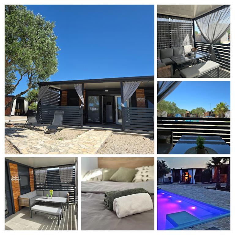 Domek Mobilny Maslina – Twoja oaza spokoju nad morzem. Witamy w Domku Mobilnym Maslina, nowocześnie urządzonym domku mobilnym położonym w spokojnej części Pirovca, zaledwie 200 metrów od plaży. Domek pomieści do 5 osób i posiada dwie sypialnie z łącznie 4 łóżkami, salon z rozkładaną sofą, wyposażoną kuchnię oraz łazienkę. Do dyspozycji Gości jest duży zadaszony taras z widokiem na basen – idealny na poranną kawę lub wieczorny relaks. Do dyspozycji Gości jest również miejsce parkingowe. Domek Mobilny Maslina to idealne miejsce na rodzinne wakacje, spokój, bliskość natury i bliskość morza. Przekonaj się o gościnności Dalmacji i zarezerwuj wakacje już dziś!
